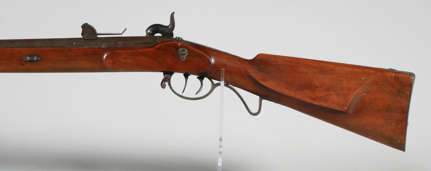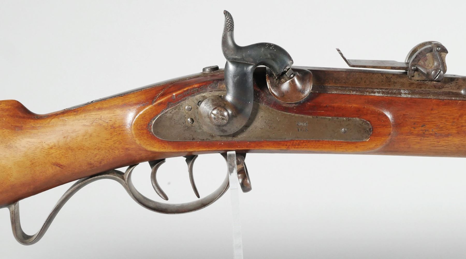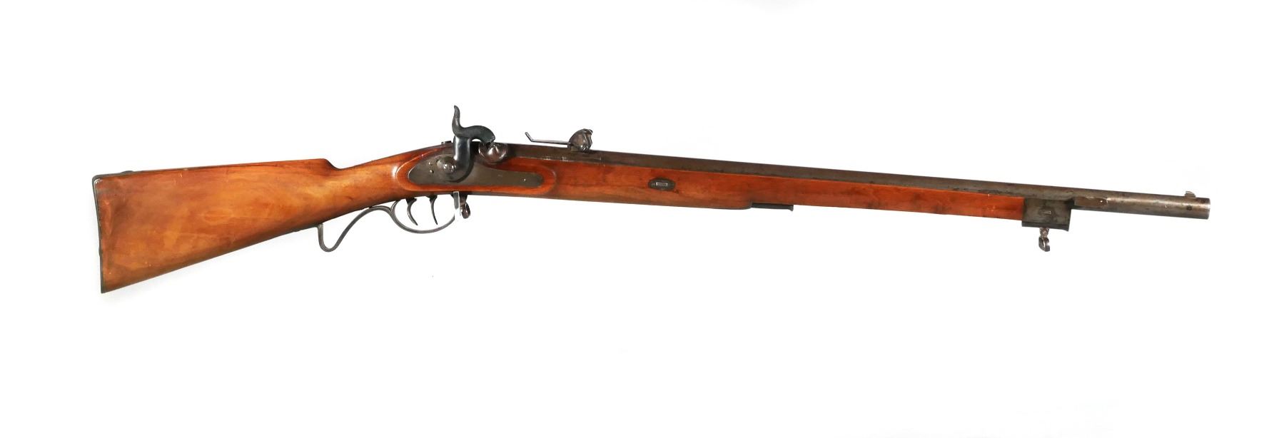 Antique German percussion muzzleloader marked Suhl V.C.S. with double set trigger. Bore opening is approx. 14mm. Barrel length is 28 1/2". Wood stock & metal finish on rifle have age appropriate wear. No cracks in stock. See photos for more details on condition.