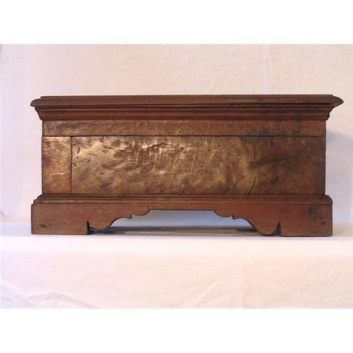 Carr Family box. The Carr Family were settlers of West Newbury, MA, Essex County. The Carr Family founded United Carr Fastener Company of Cambridge, Ma. In its original state of preservation-- including the paper liner-- this box has been handed through generations of the Carr Family. The box dates to the late 1700s and is constructed of mahogany with walnut veneers. Wonderfully carved base.