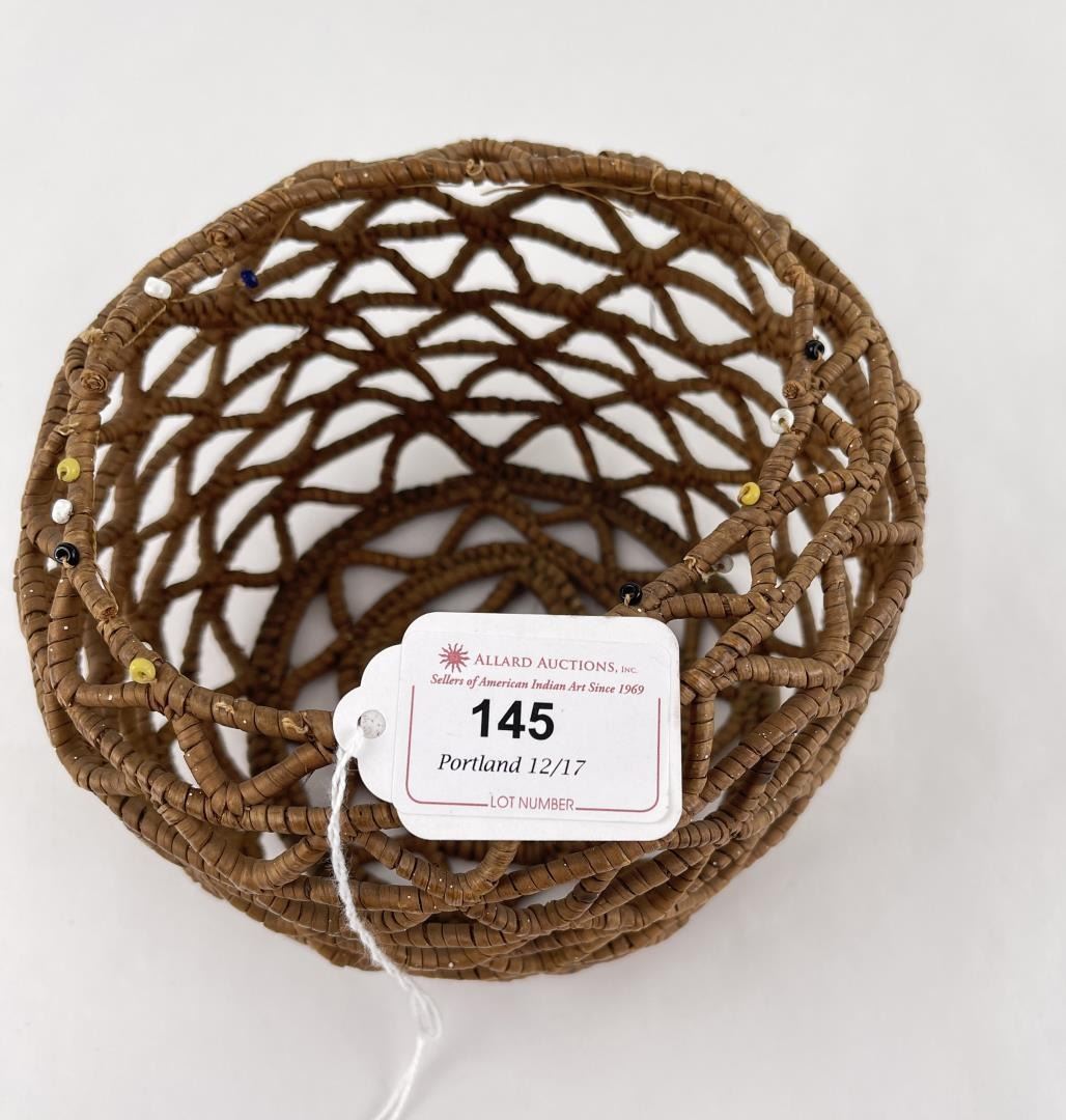 Old museum tag on base says British Columbia. 5 1/2" diameter, 3 7/8" tall. Allard Auction Collection Inv: RDU 42809