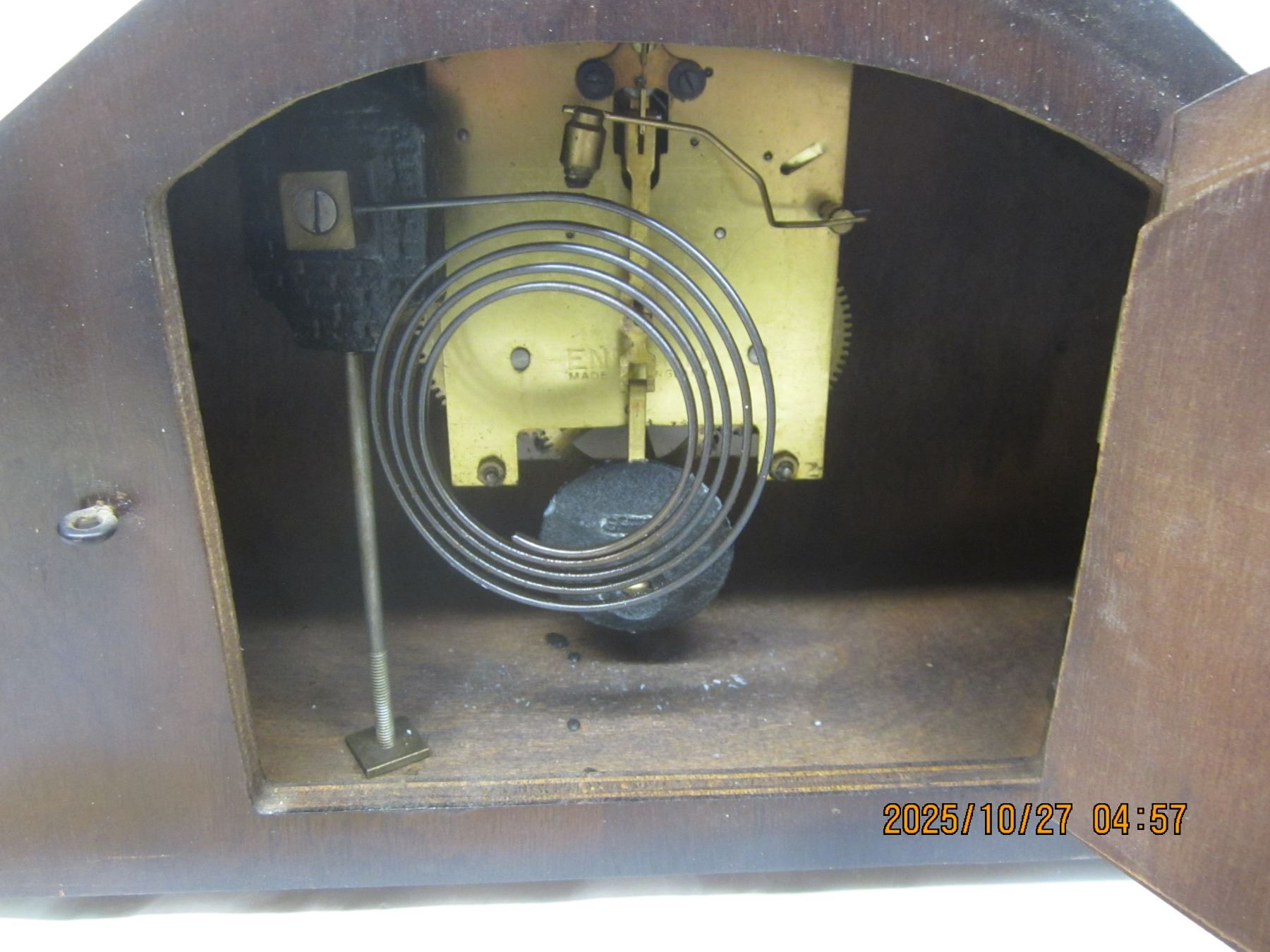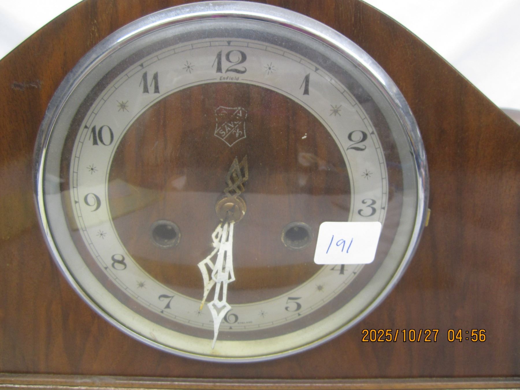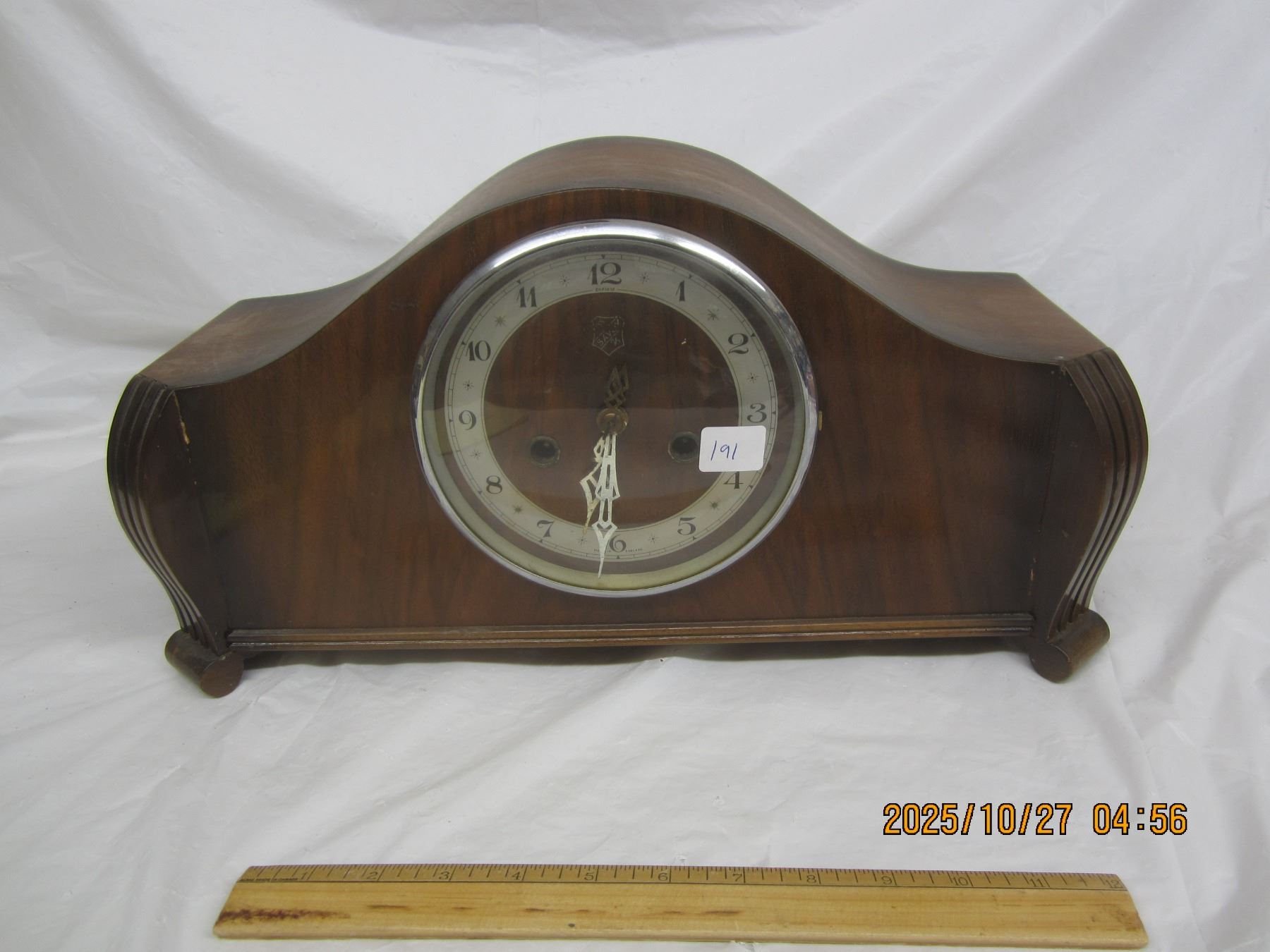 Antique Savoy Walnut Mantle Clock Works No Key has Pendulum