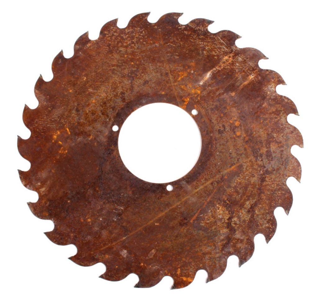 This is a Montana logging saw blade showing a great patina. This would make an excellent piece of wall art. The piece measures 25.75"" in diameter.