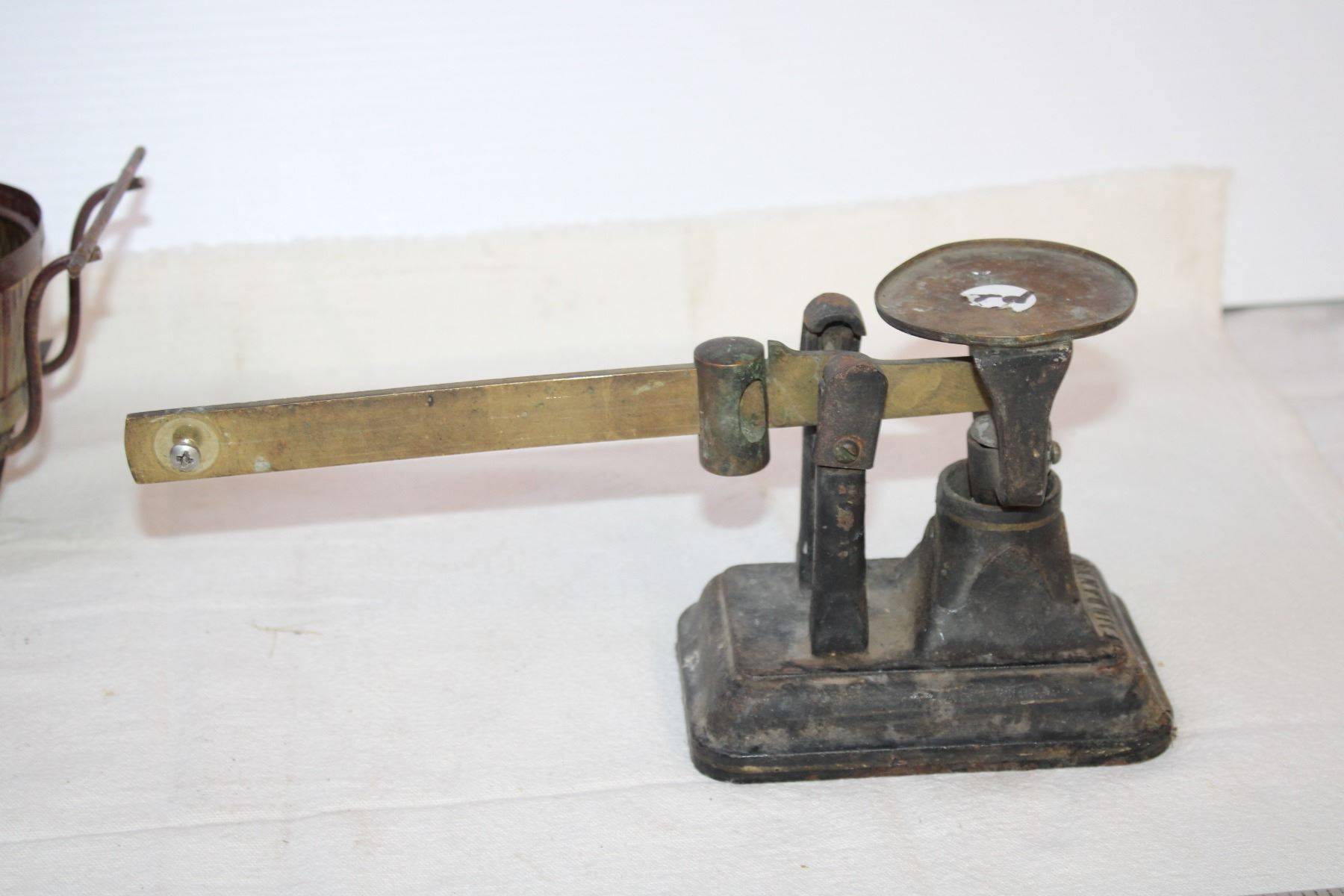 Antique Scale, Cast Iron Woodpecker, and Cart Decor