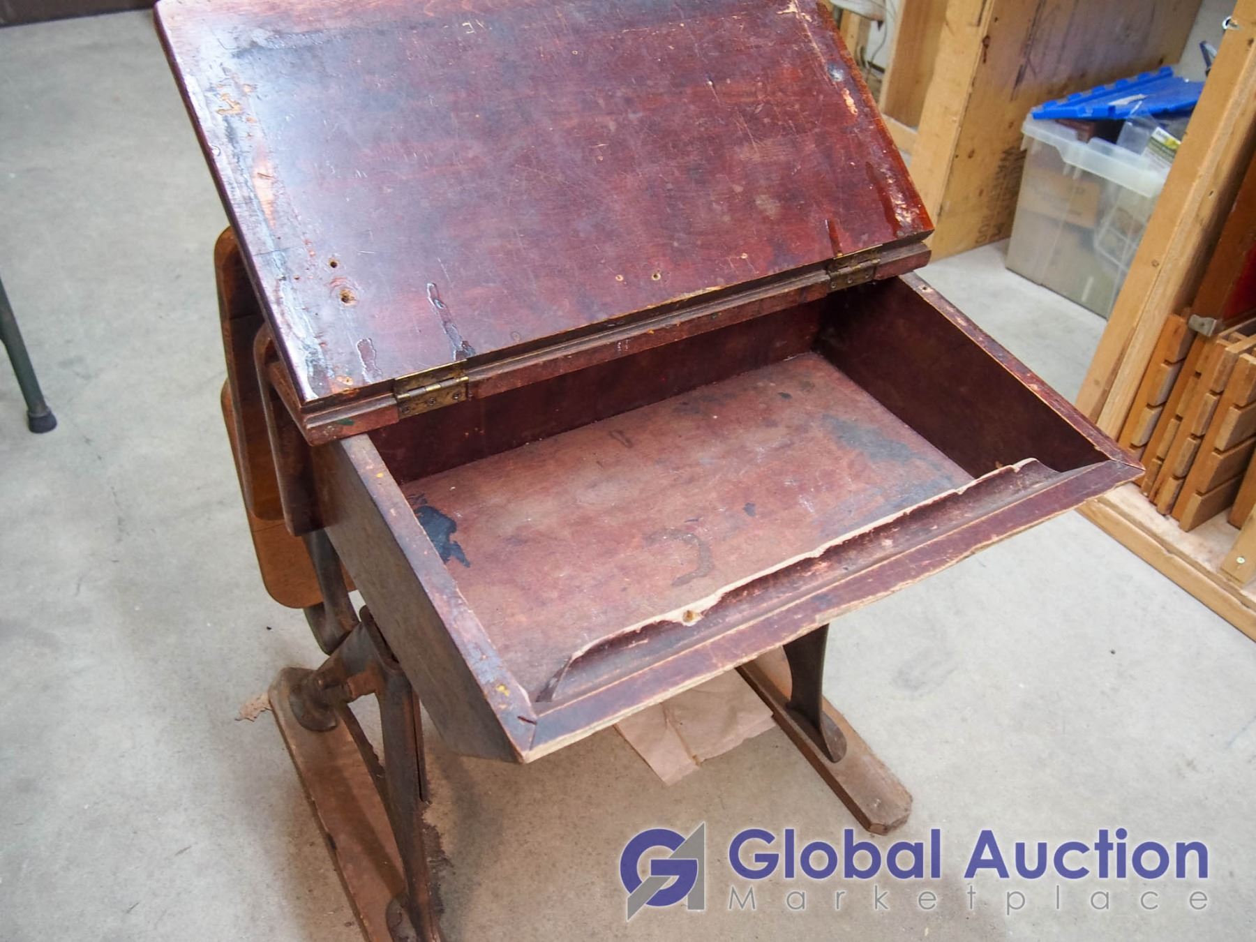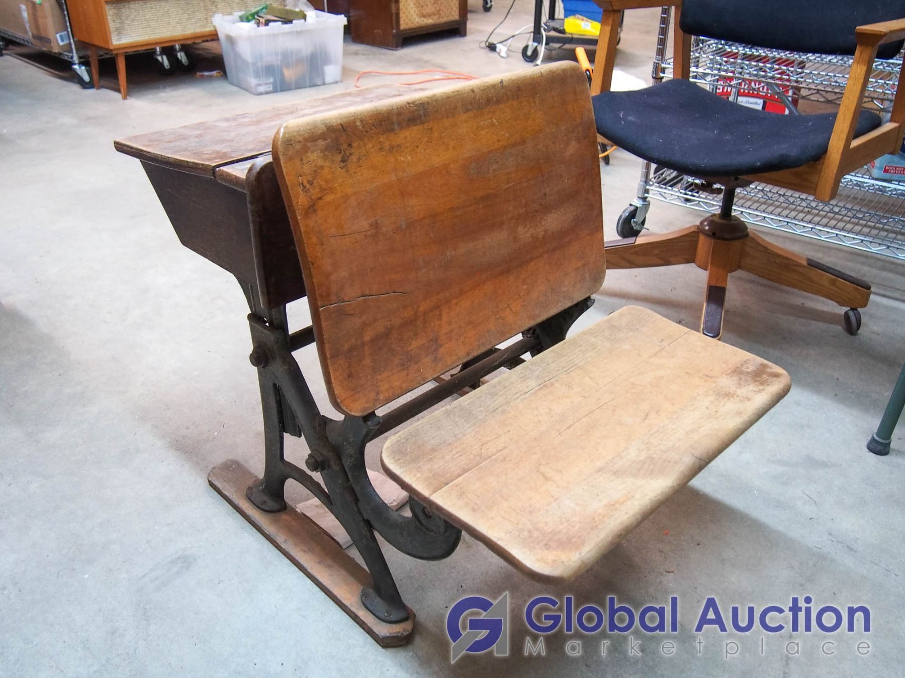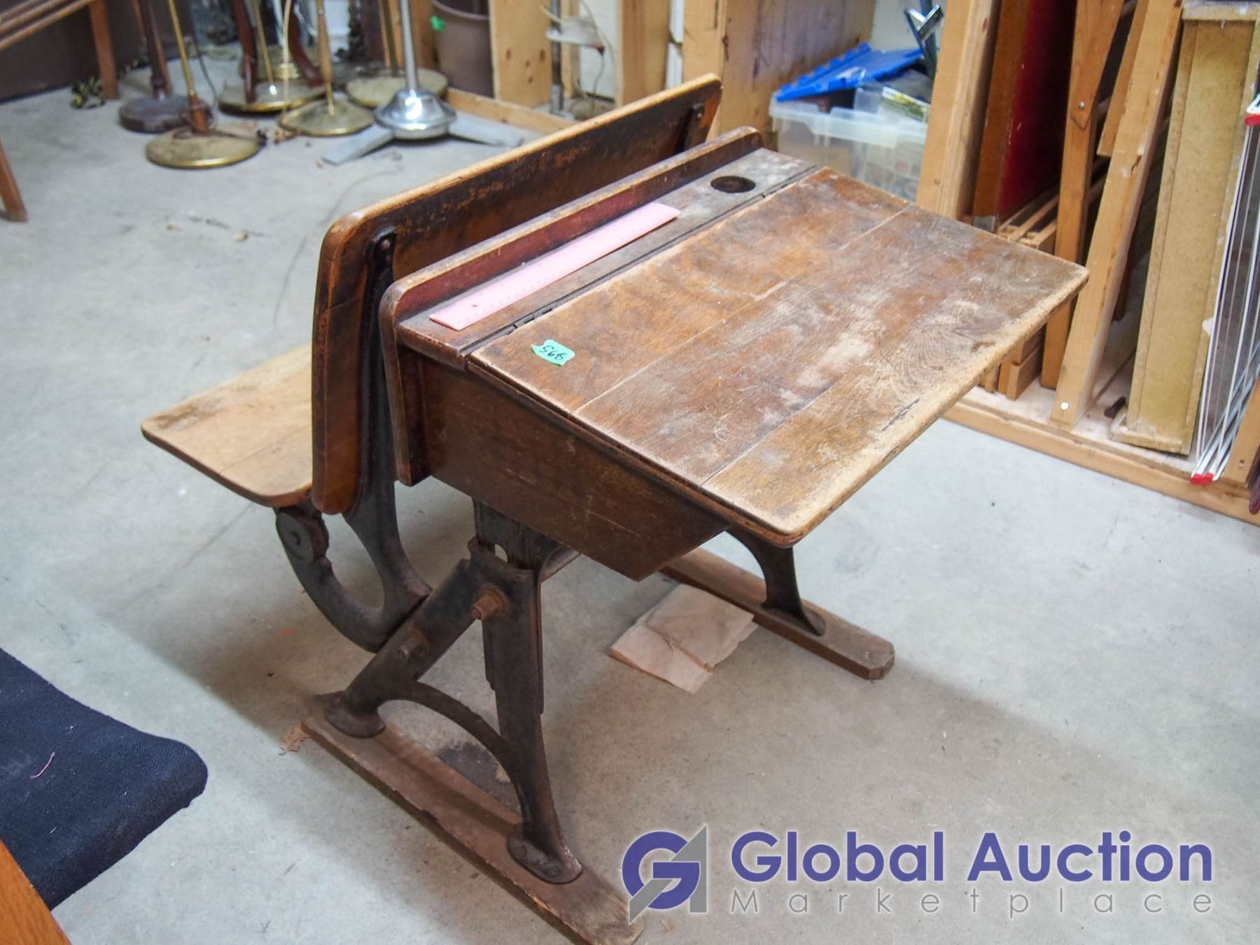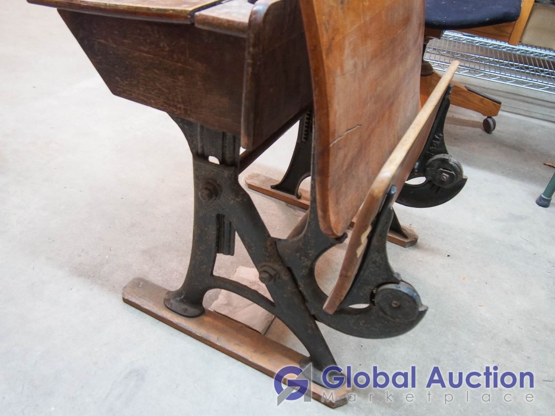 Antique School Desk, Cast Base