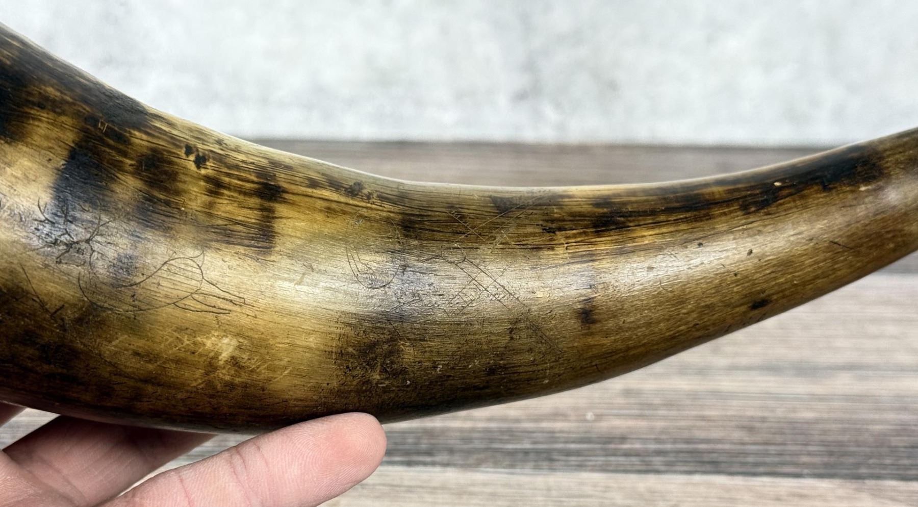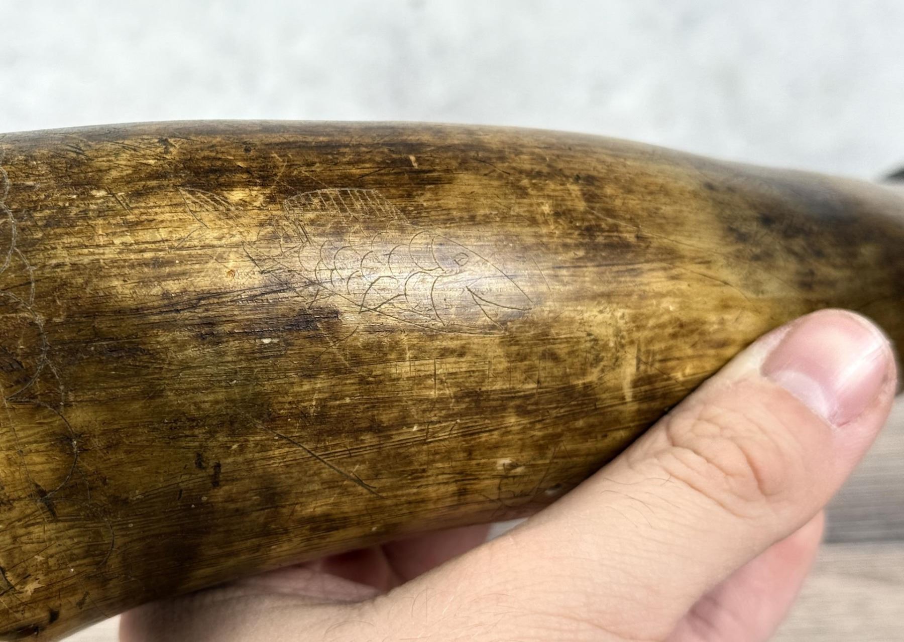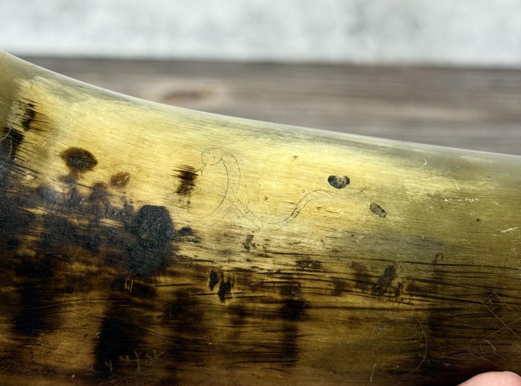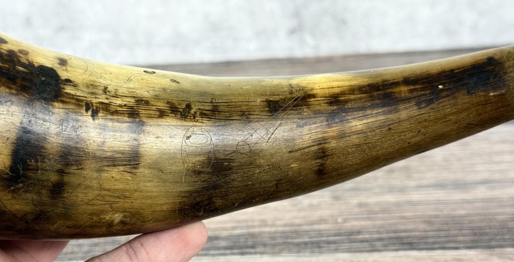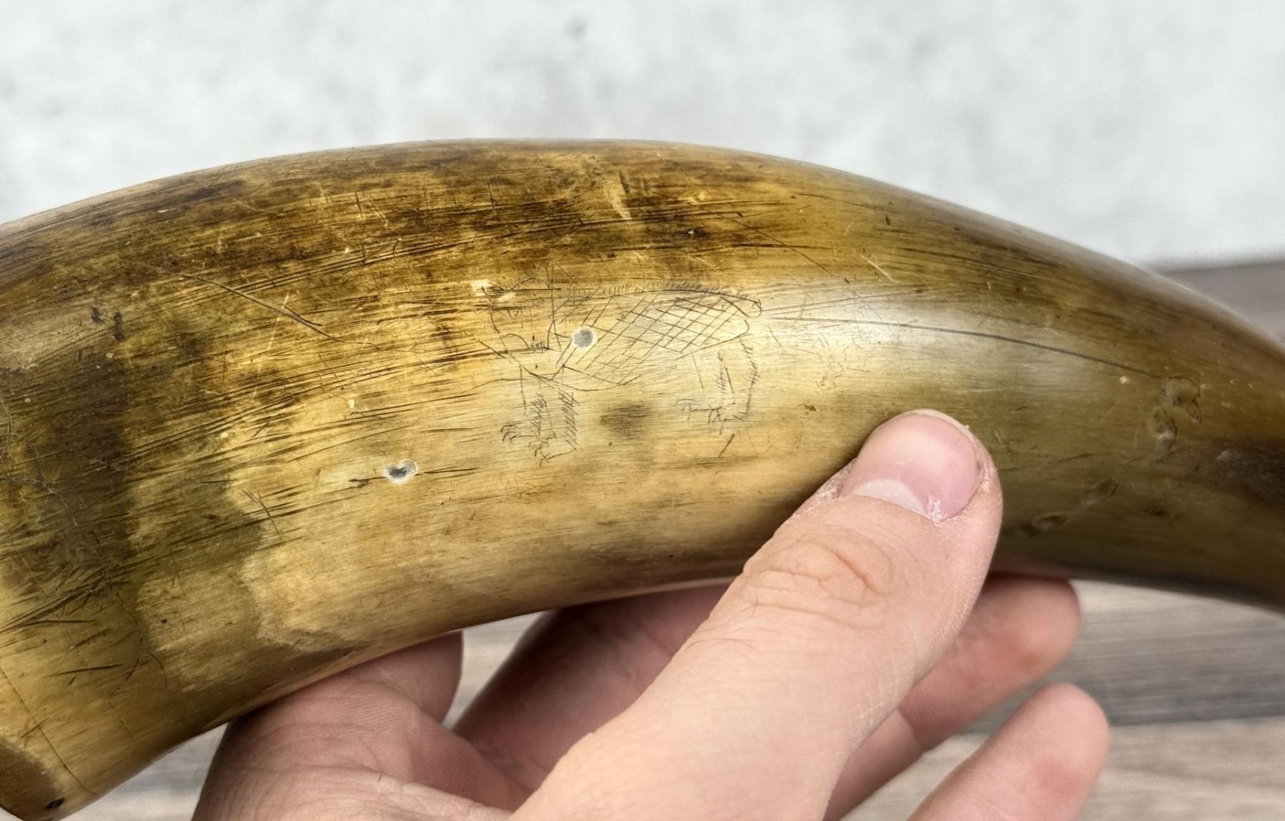 Nice original piece with images of deer, bear, and snake. 10 5/8" long.