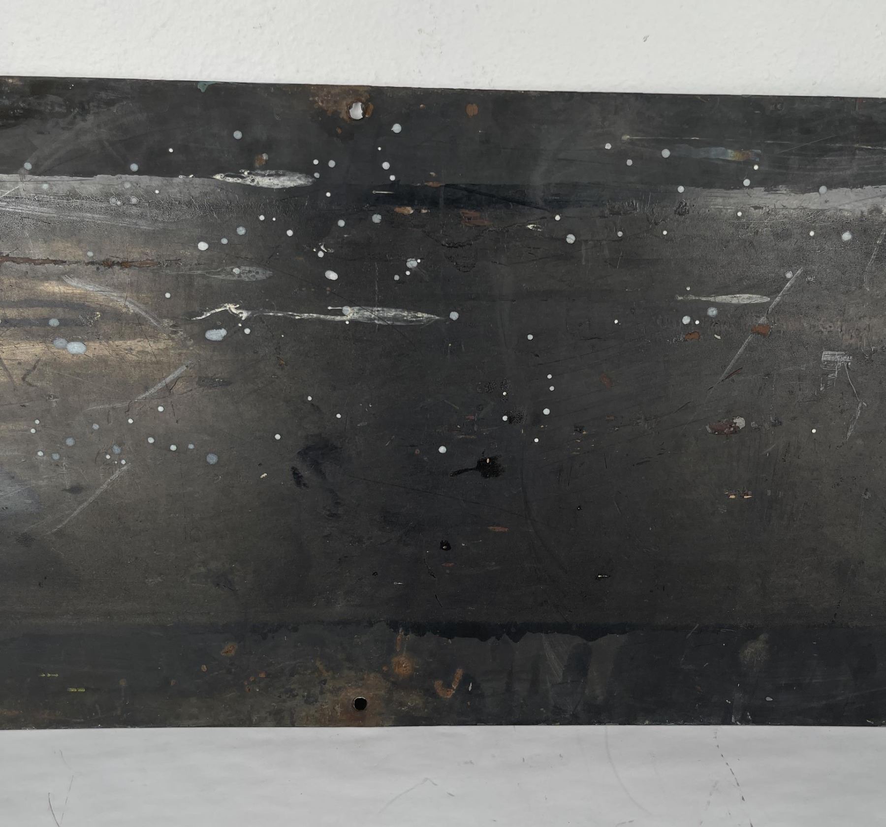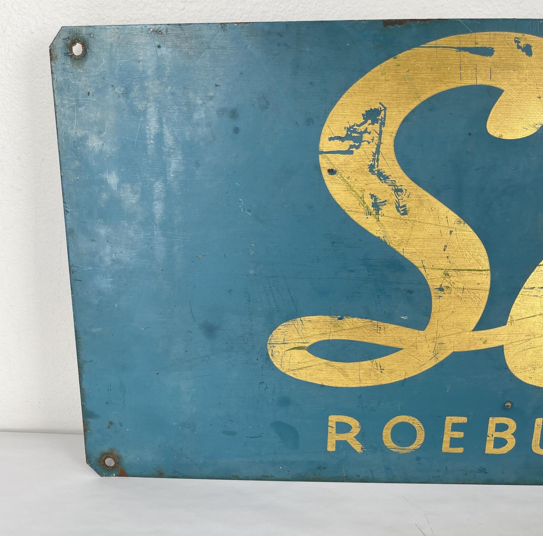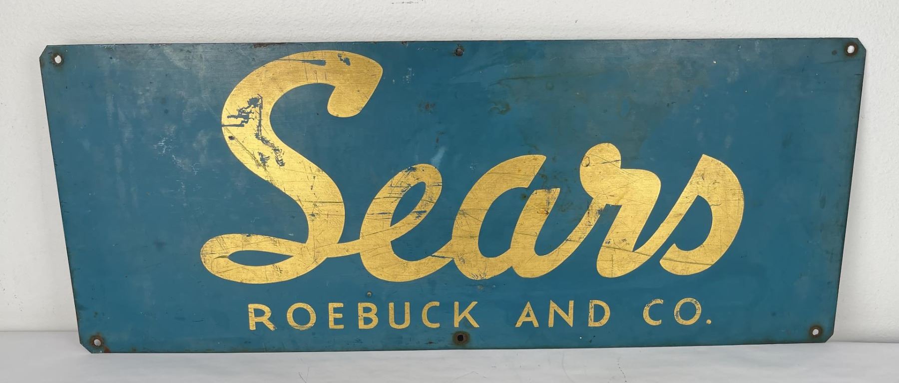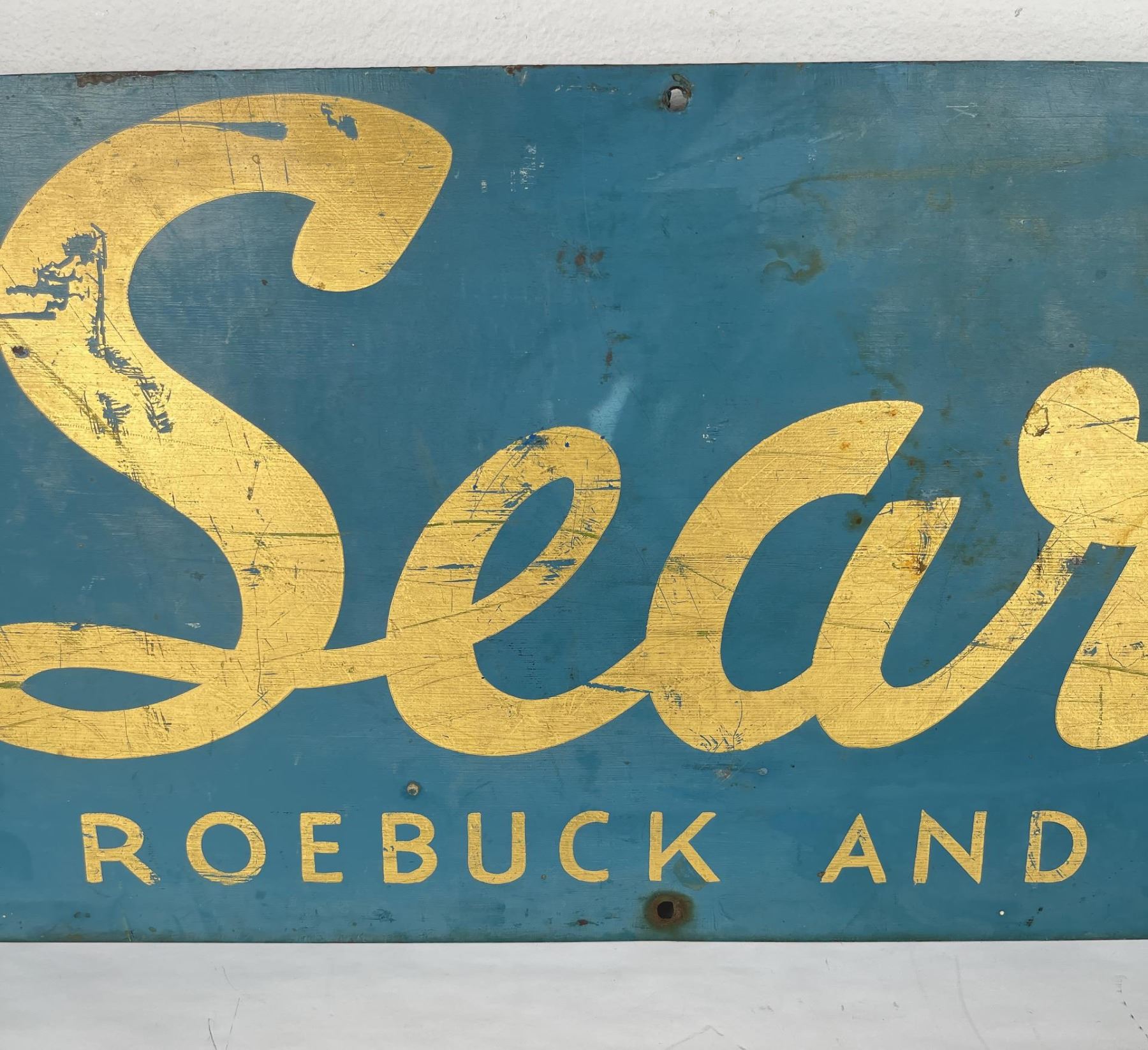 Very nice old original sign. Heavy gauge painted metal. Hung in front of the store. 14" by 36".