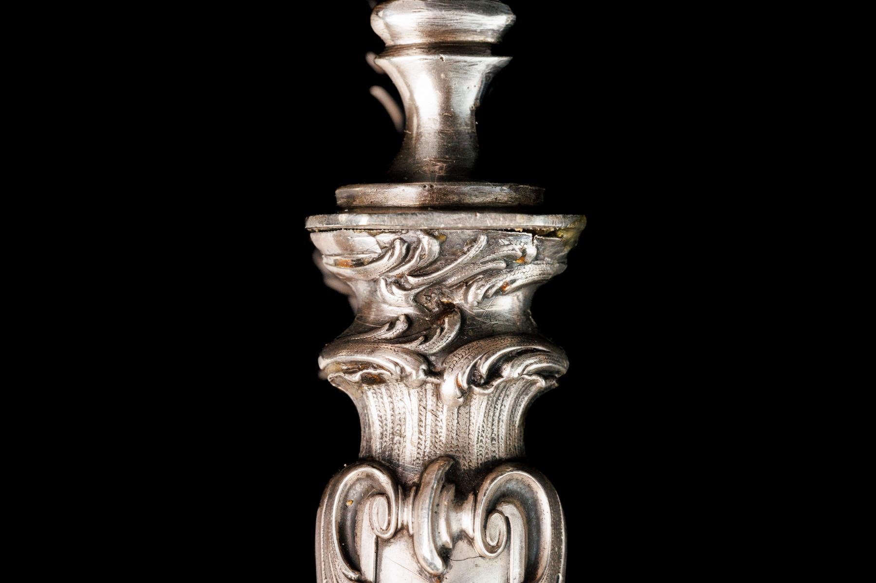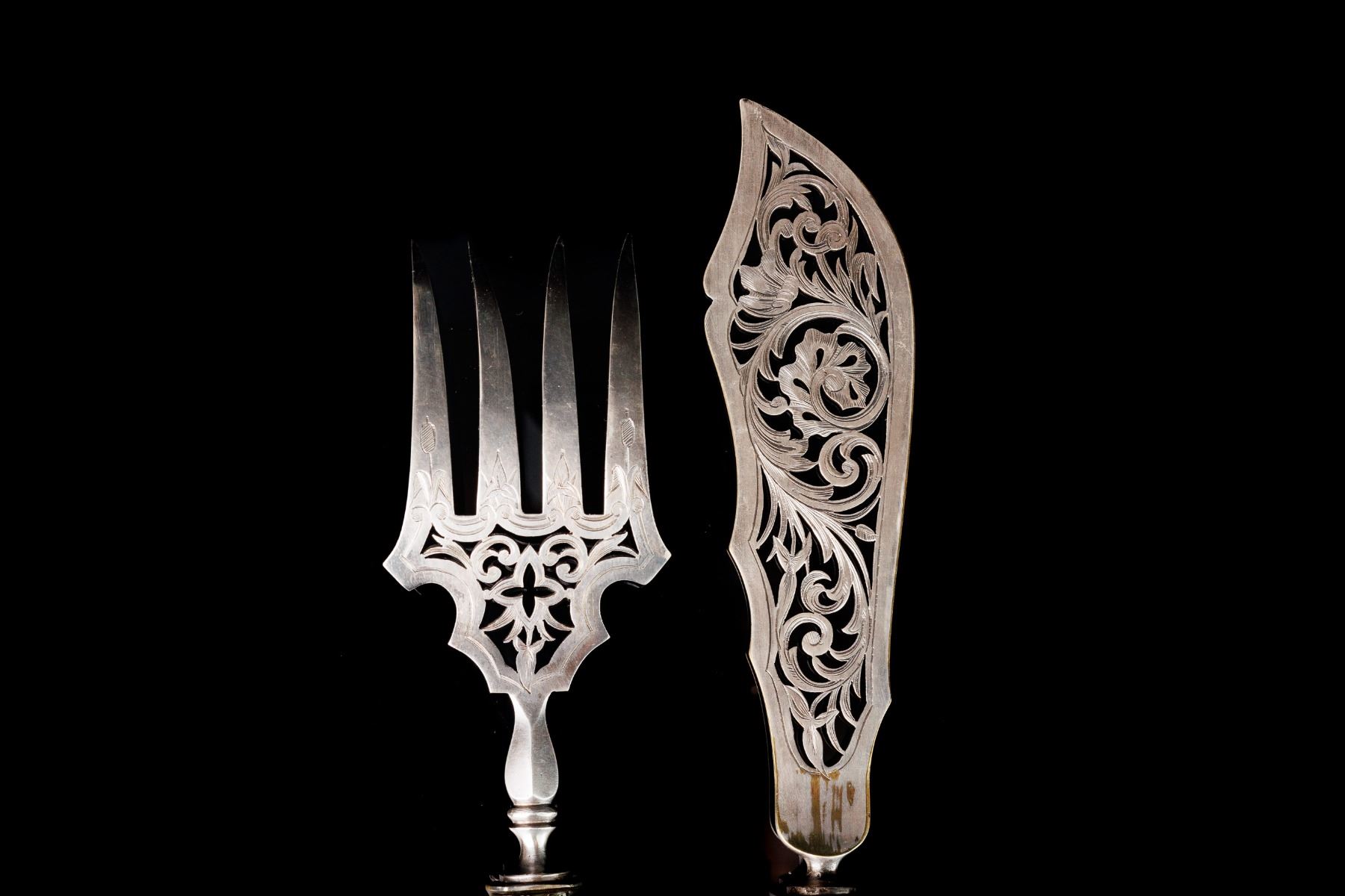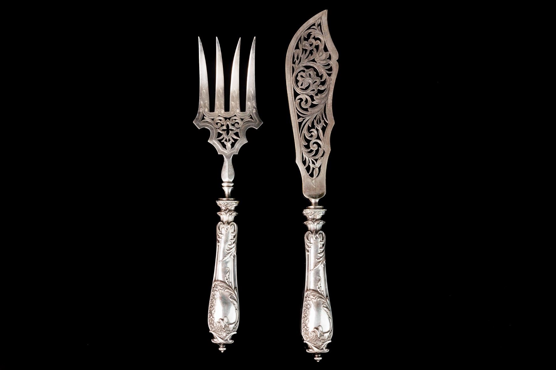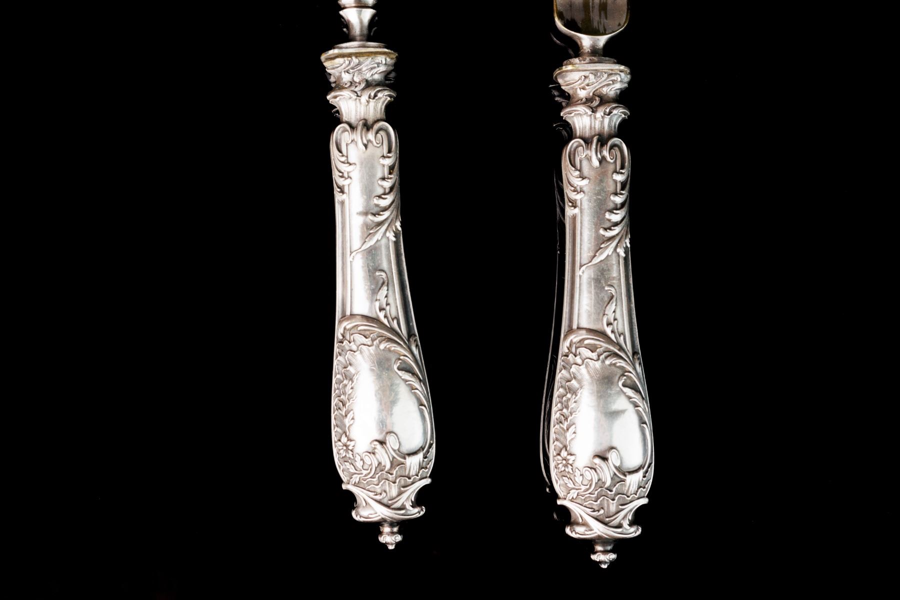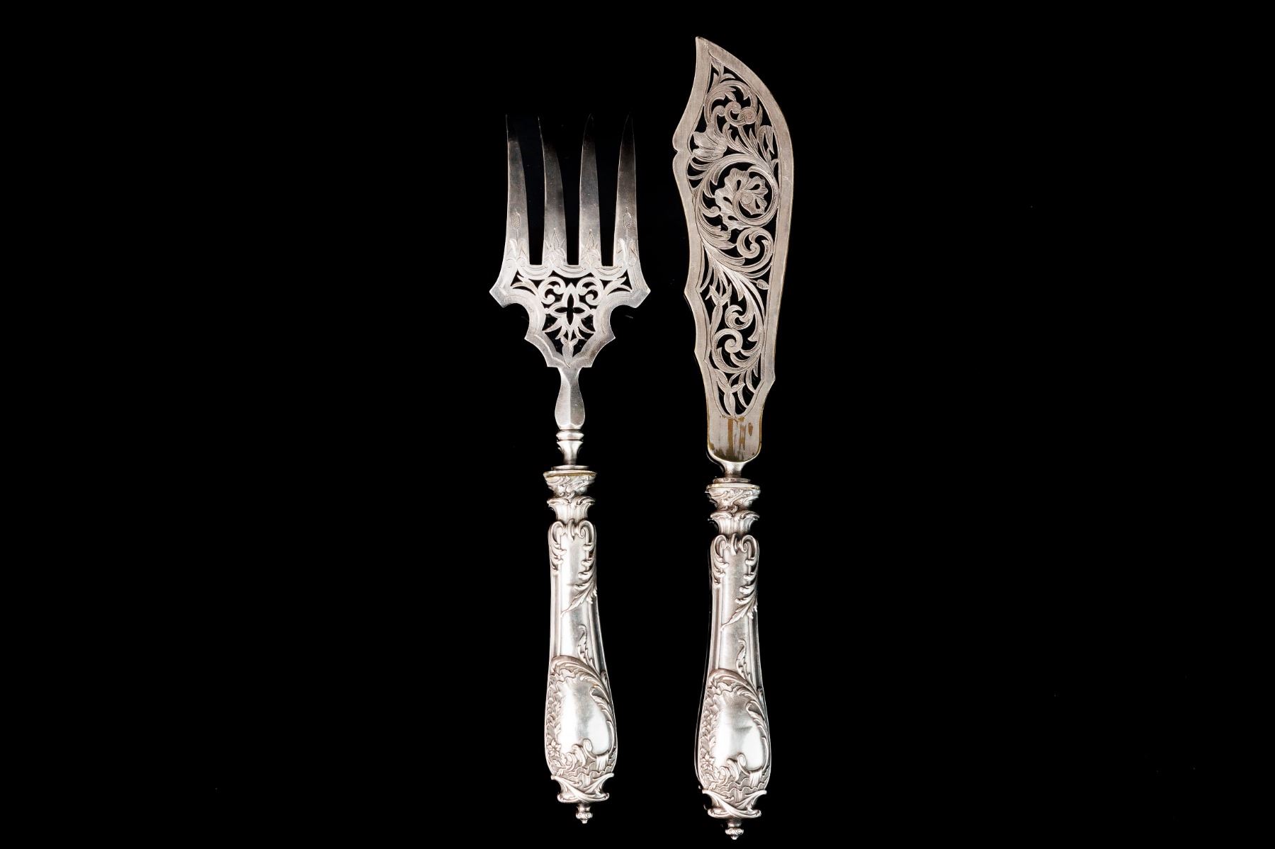 Classic serving set for meat. Silver handles, marked, France.