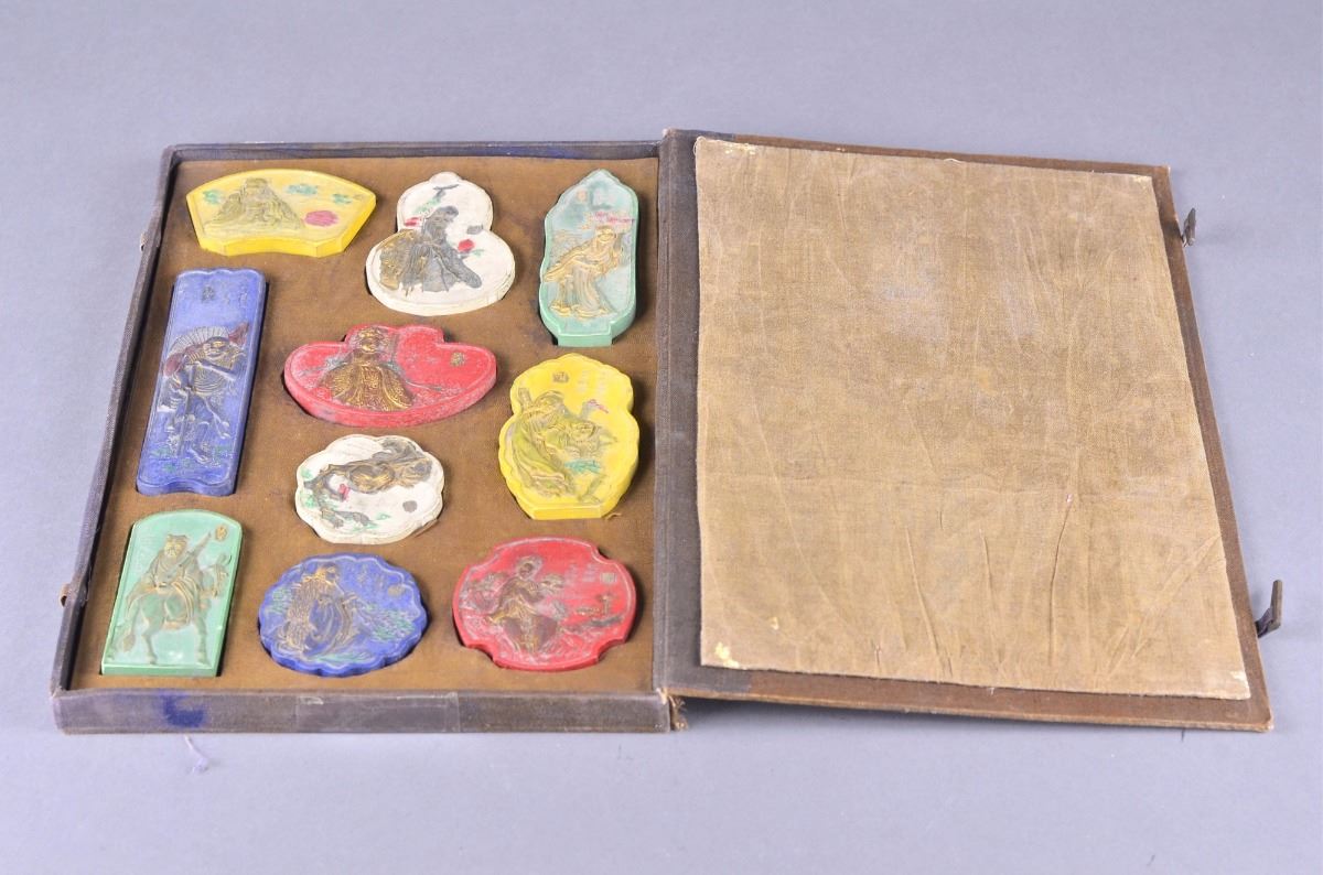 Antique Set of ten Chinese ink stones various colors and sizes; L: 12 cm, W: 5 cm (approx.)