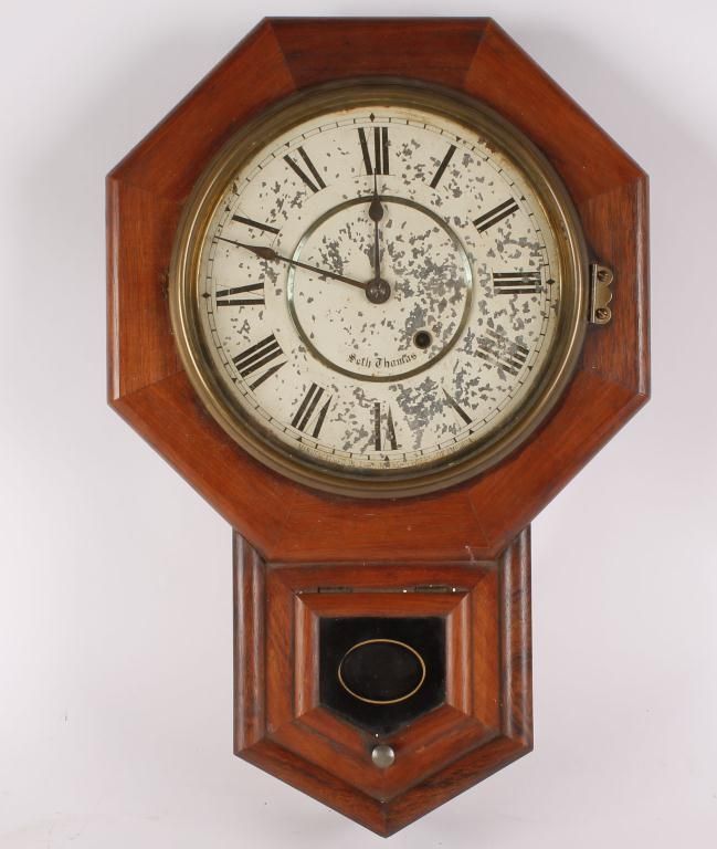 Walnut case, face has major losses to painted finish, unknown working condition.