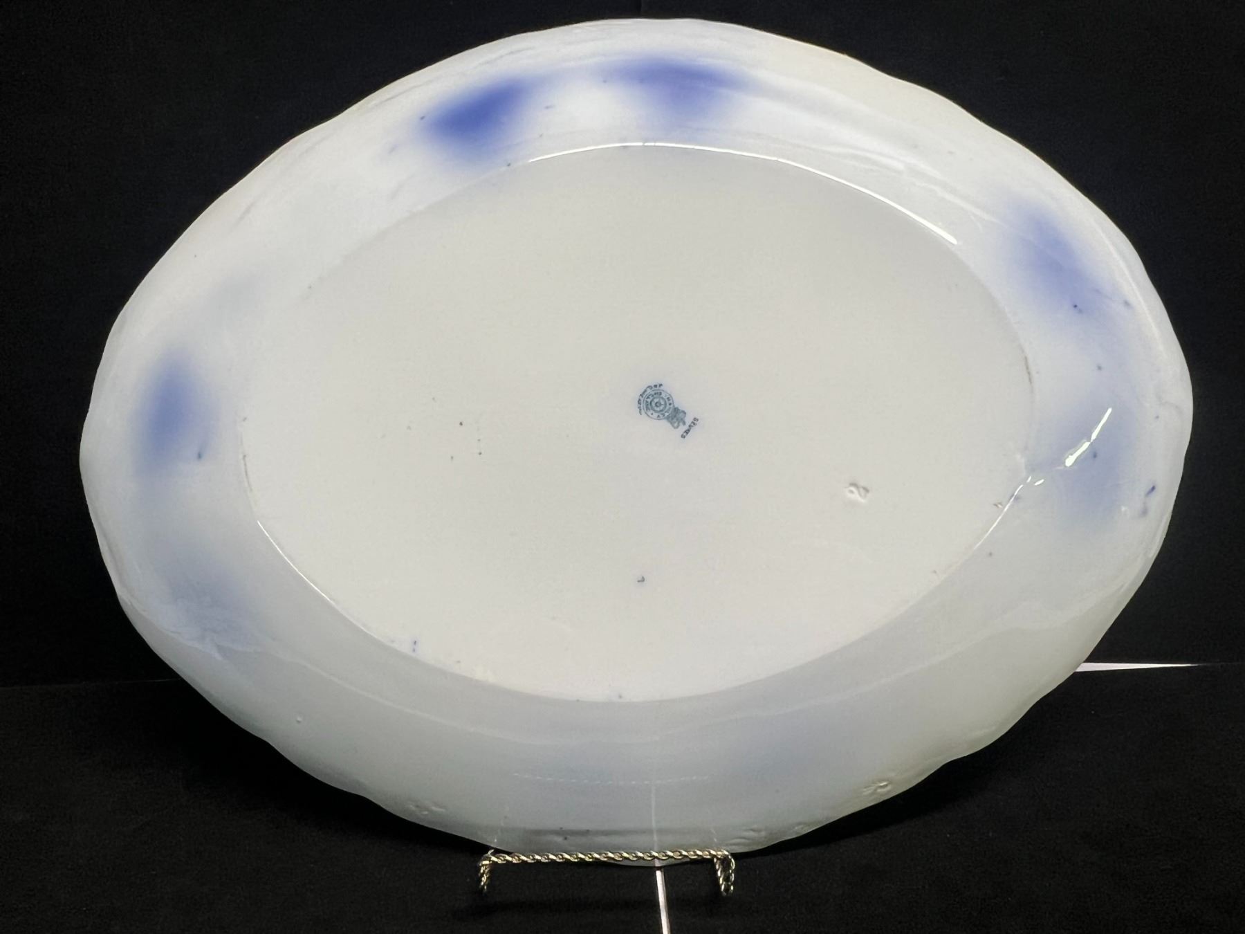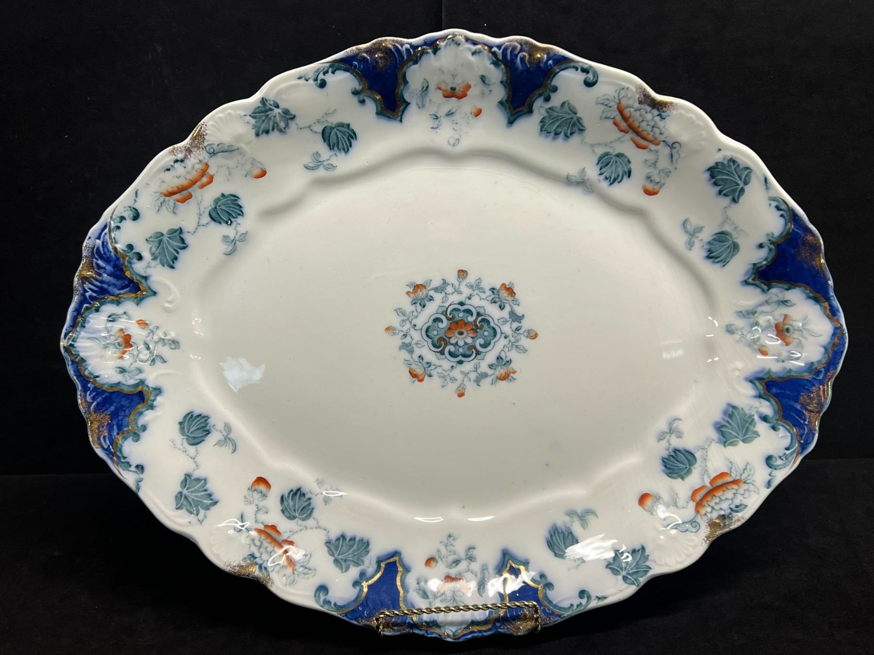 VERY big at about 19.5x15". Small Edge chip and some crazing. Antique Sevres Flow Blue J&G Meakin England Serving Platter