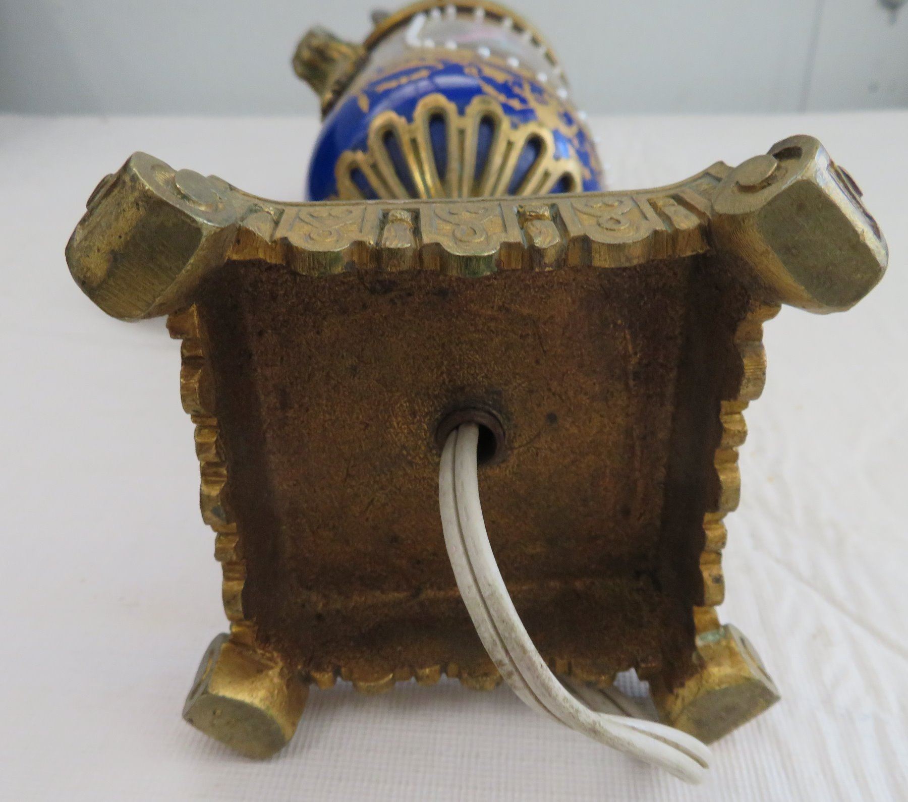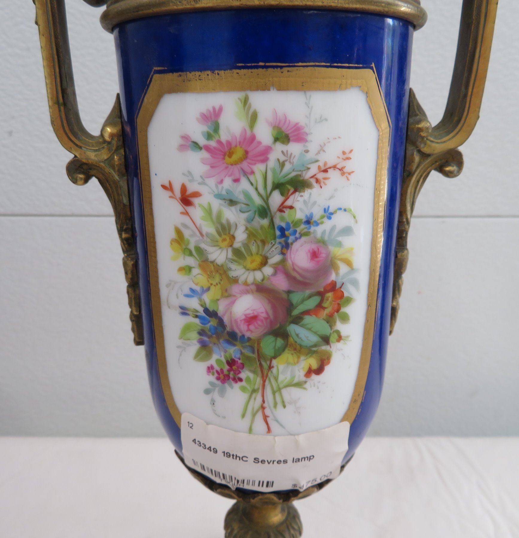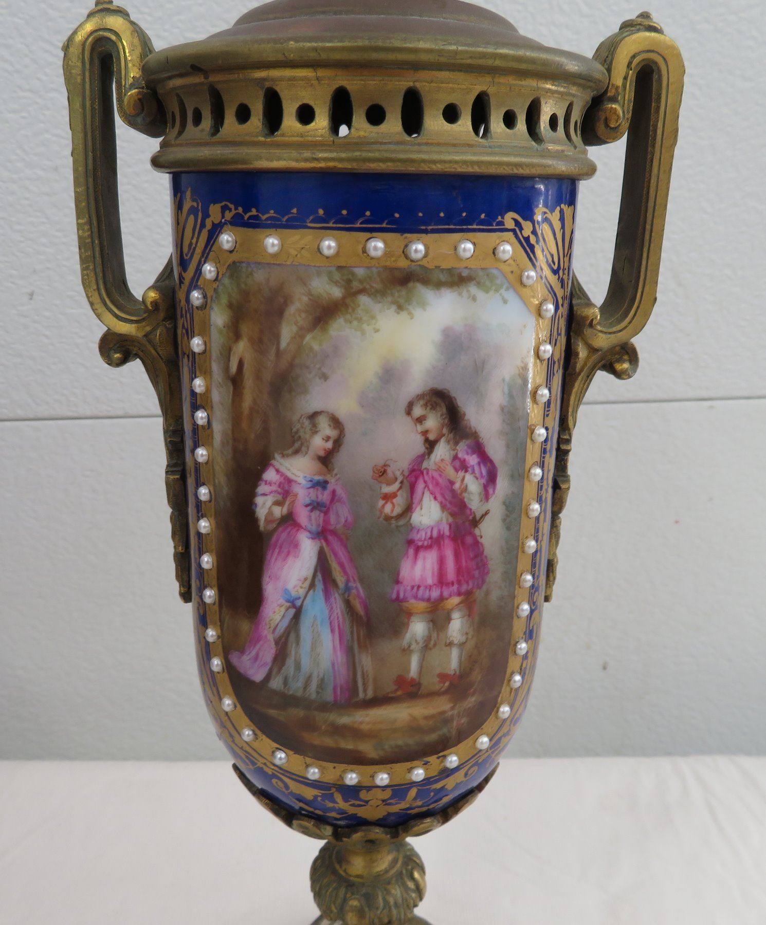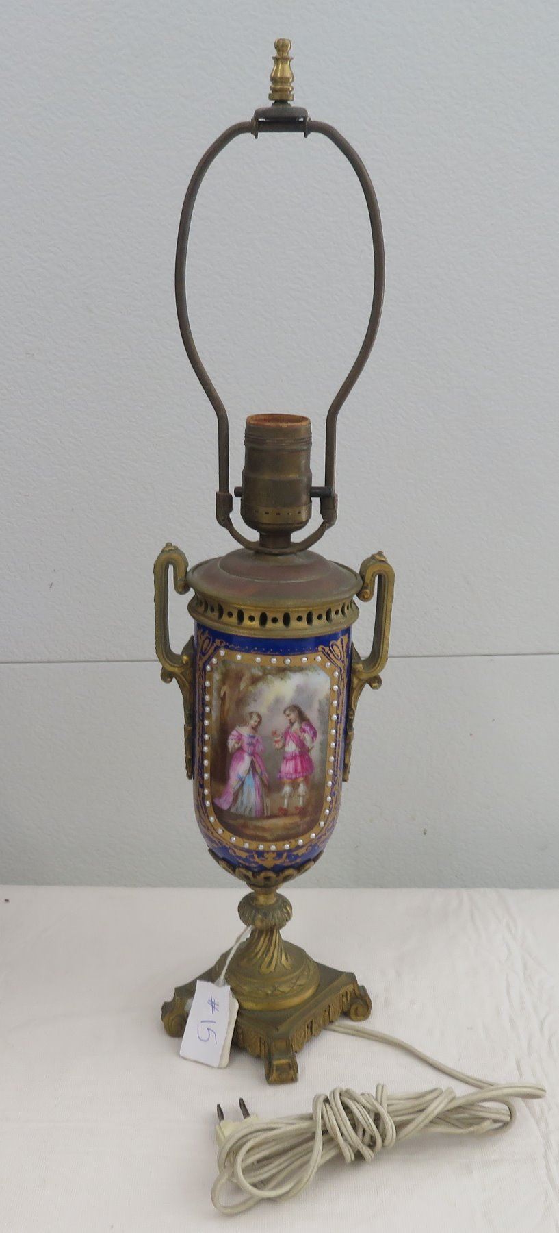 Antique Sevres Lamp, c. 19th century. Made of bronze, porcelain and pearls, the item measures 20" x 4 1/2" x 3". Europe. Condition: No shade, see images. Shipping: $40.00 USA estimate only, w/insurance and signature, double-boxed, due to size and weight.