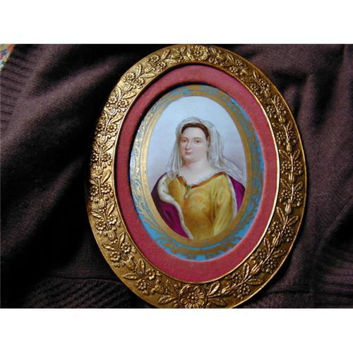 We are pleased to offer a magnificent Sevres portrait plaque of la Marquise de Francoise d'Aubigne de Maintenon. She lived between 1635-1719. She had originally the governess of the children of Louis XIV and Mme de Montespan. In 1684 she morganically married the king.