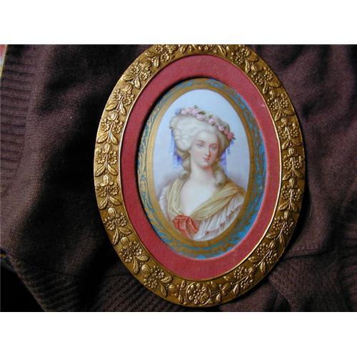 It is our pleasure to offer a truly magnificent and regal porcelain plaque by Sevres. It portrays the intimate frient of Marie-Antoinette, la Princess de Lambelle.