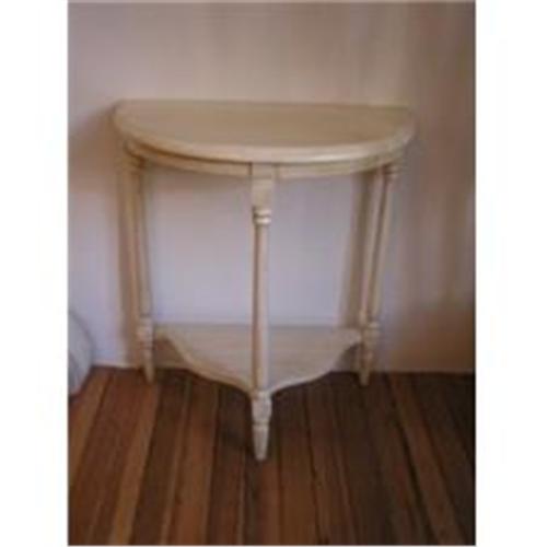 <tr><td>Title:Antique Shabby White Umbered Demi Lune Table </td></tr>