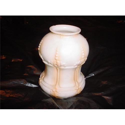 This is a very old shade. It is primarily white with streaks of carmel or beige. The shade came out of a house built in the 1860's that originally had gas lamps. It is in good condition--no cracks. The bottom of the edge of the shade is a little rough, but it does not appear to be chipped. The white part of the lamp shade shows some soil that really makes it look old and very antiquish. It would look great in a very unique and old antique setting and perfect on a lamp that you wanted to give a very old appearance. The inside of the shade is all white and shiny. Diameter of the Top is 2 1/8 inches; Diameter of the Bottom is 3 3/8 inches. It is in very good condition considering its age. No cracks or chips.