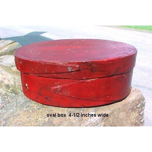 <tr><td>Title:Antique Shaker Small Lapped Oval Box Red Paint</td></tr>