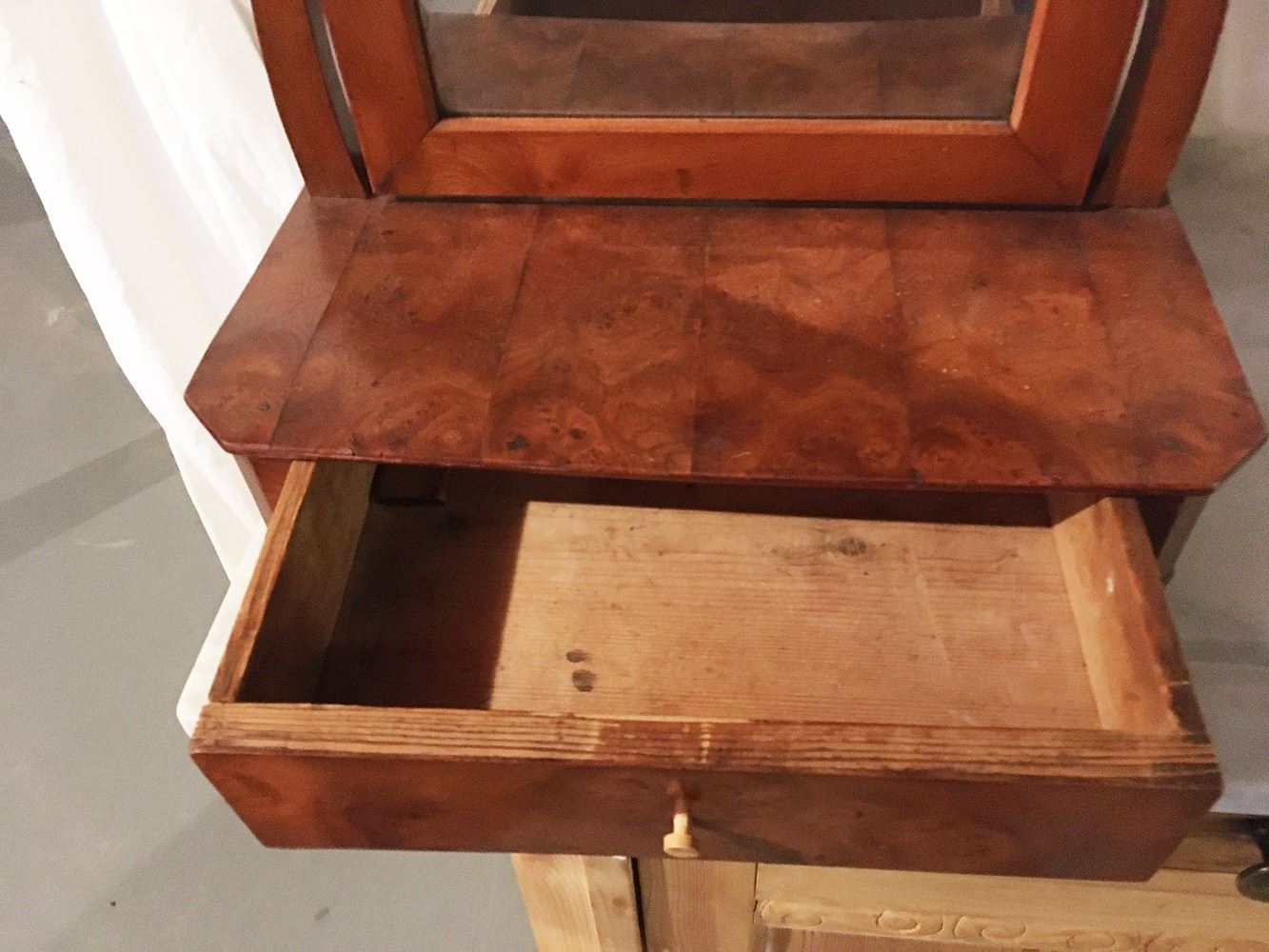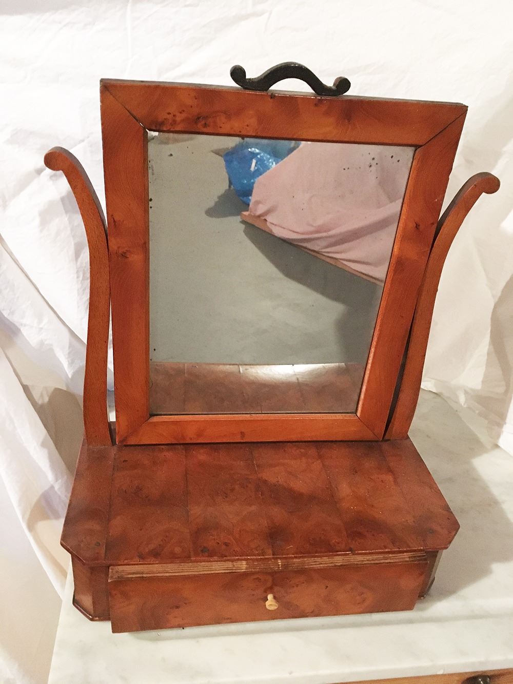 Antique shaving mirror dressing box with drawer, Swedish, measures approx. 13 inchex x 8 inches x 18 inches.