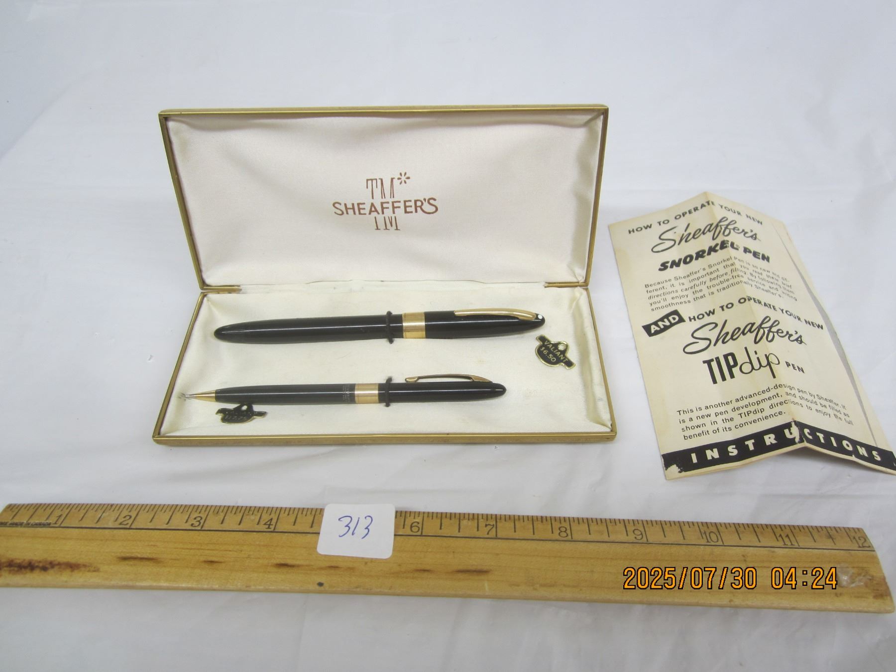 Antique Sheaffer's Pen and Pencil Set with a 14kt Gold Nib 1952-1959 Snorkel Pen in Display Box
