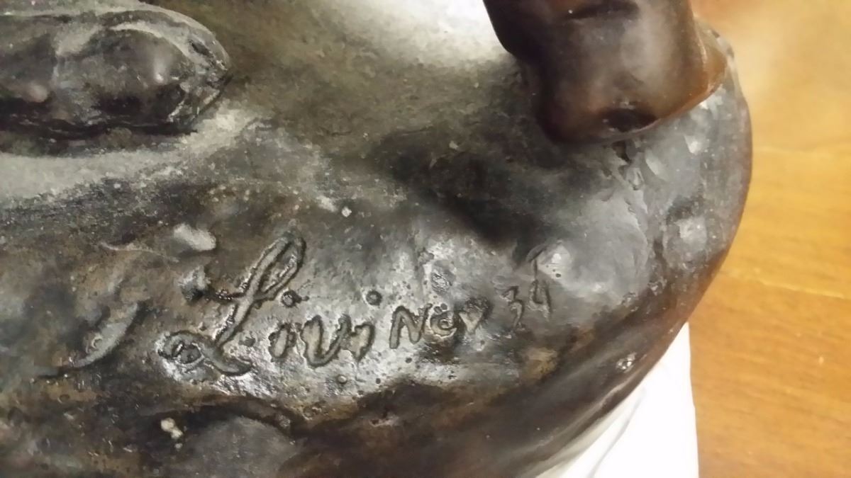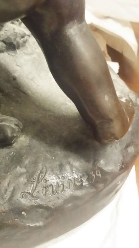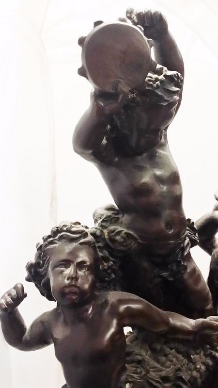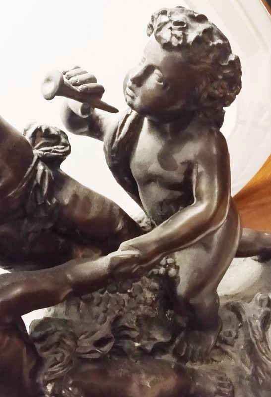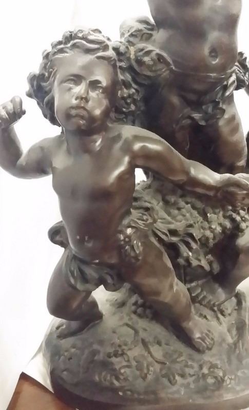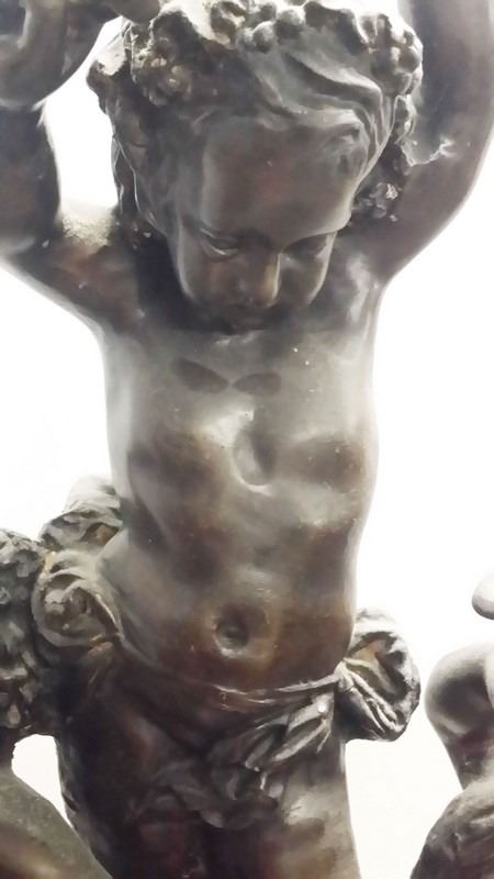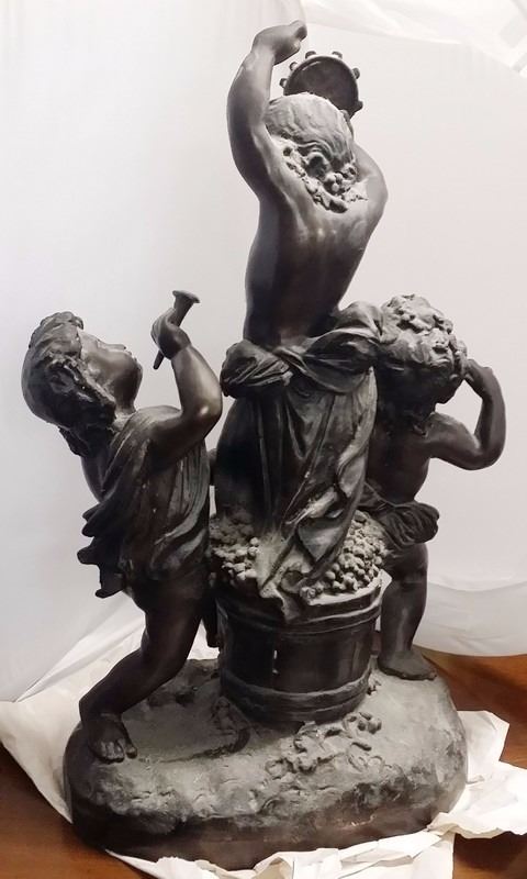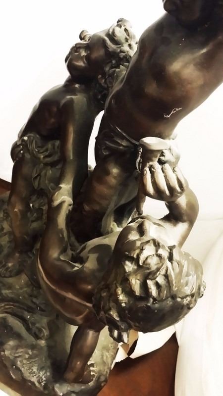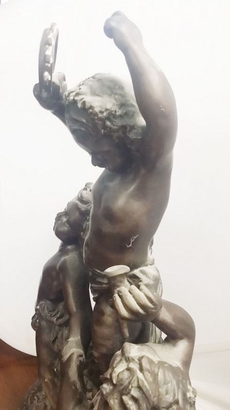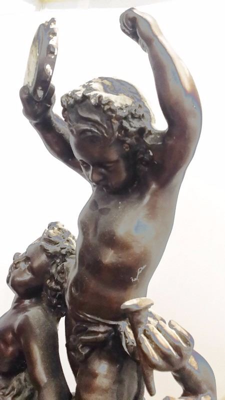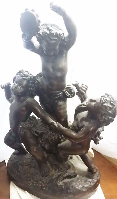 Antique c1934 Large French 3 Male Cherub Angels in Bronze Playing Instruments (Tamborine) Signed by Living in 1934 24x16" inches, 30-lbs