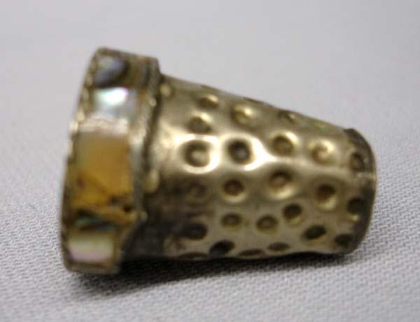 Antique Silver Inlay Abalone Thimble, measures 1''H x .75'' dia. Buyers Pay Actual Shipping and Handling Charges(see terms and conditions for more information).