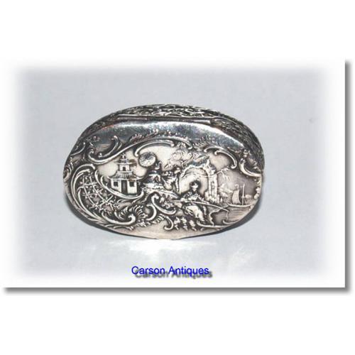 <tr><td>Title:Antique Silver Japanese Scene Pill Box 1899</td></tr>