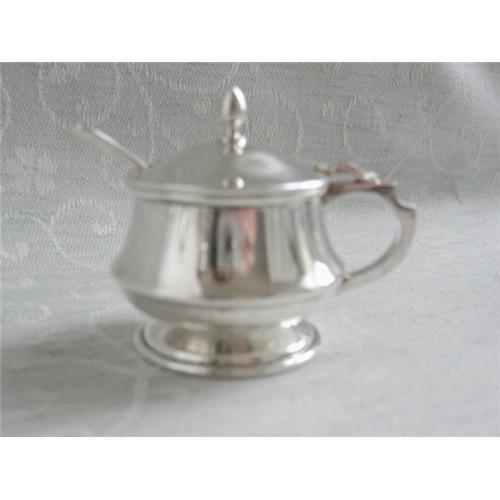 <tr><td>Title:Antique Silver Mustard Pot with Spoon</td></tr>