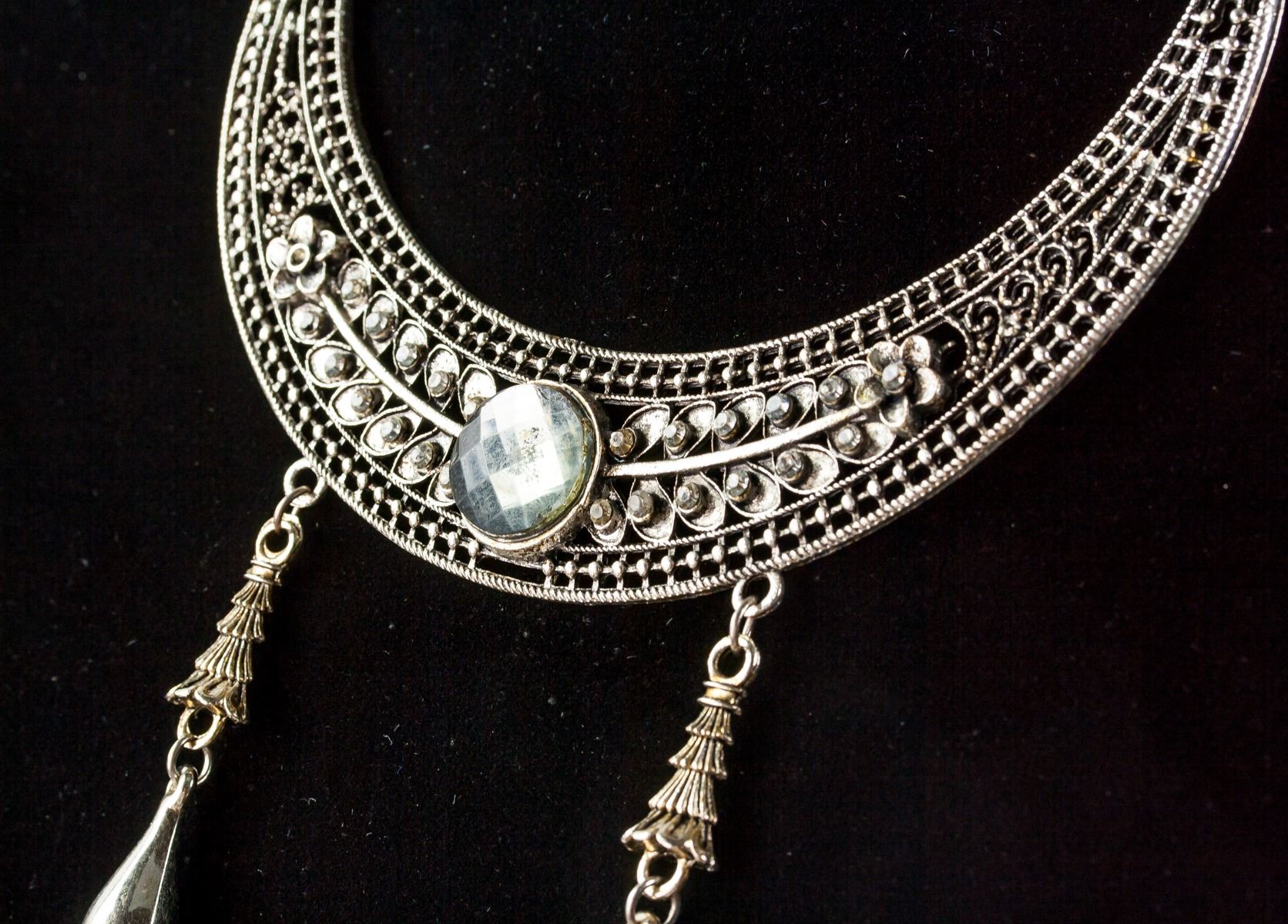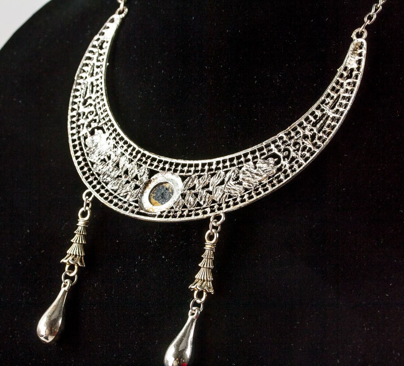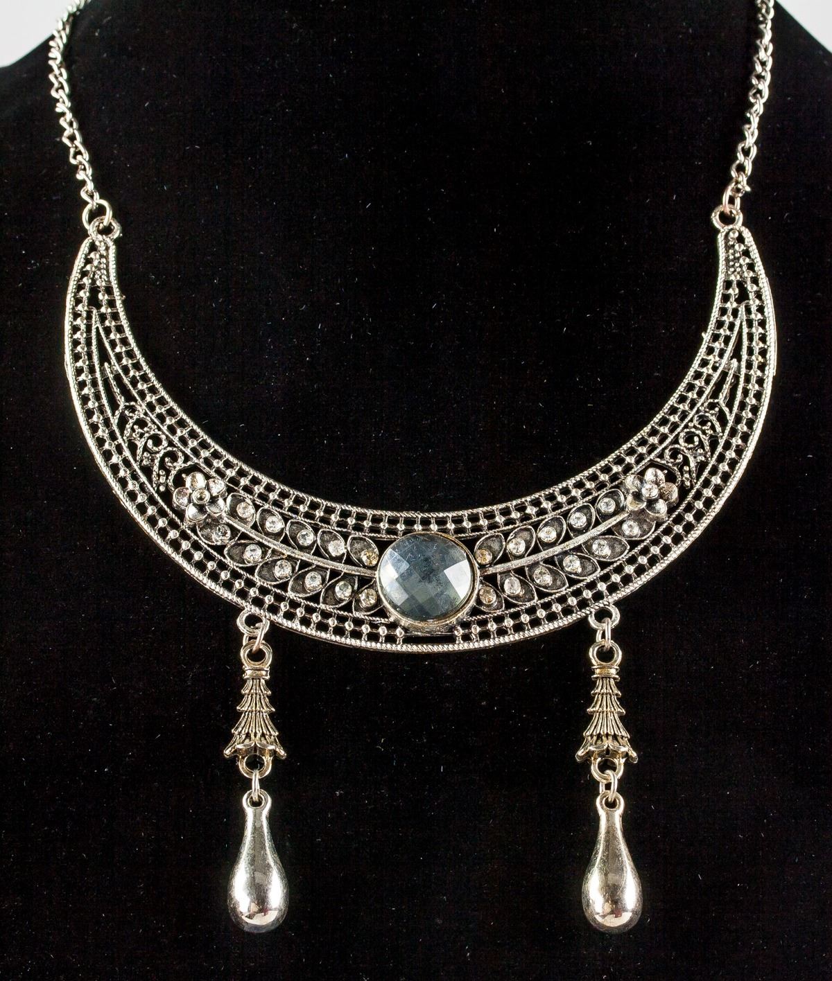 Antique silver necklace with two drop accents.