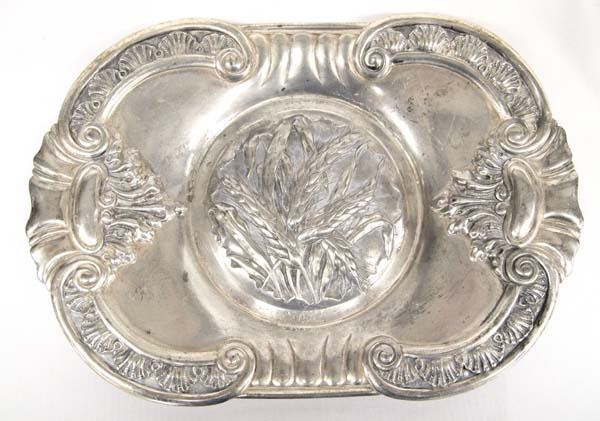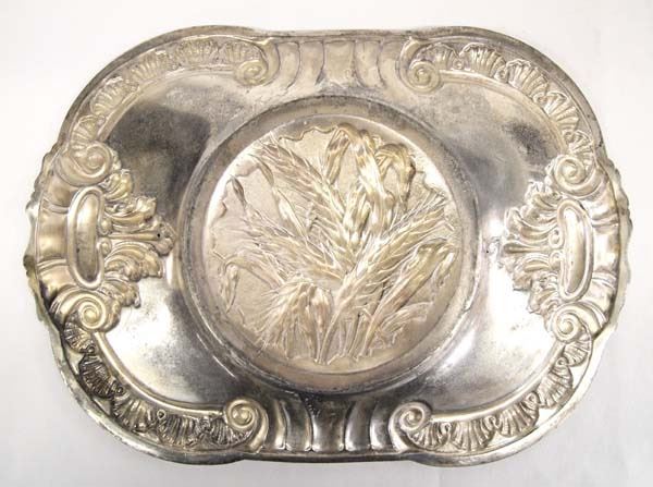 Antique Silver Plate Wheat Pattern Bread Tray, measures 12''L x 8.25''W x 1''H