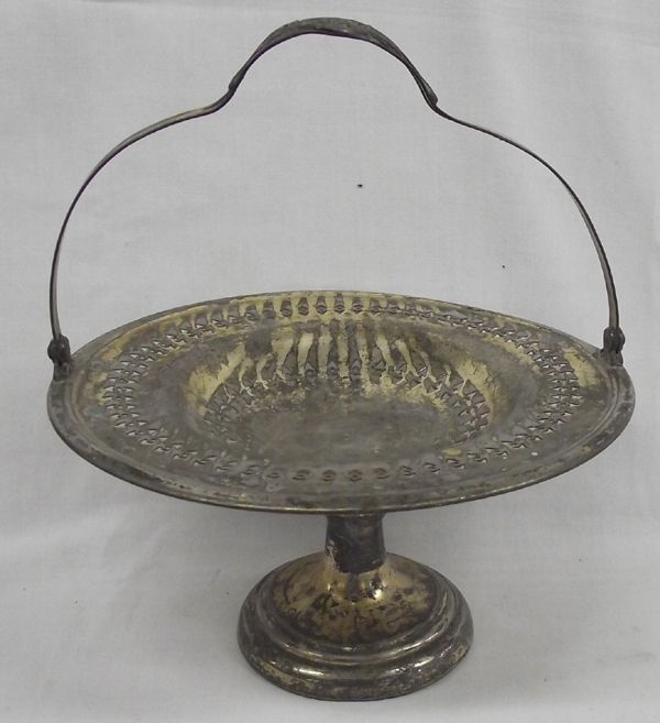 Antique Filigree Handled Server, silver plated. 11.75'' diameter x 6''H. Handle has intricate cherubs and flowers. In good condition for it's age. From Proctor Collection, Silver City, New Mexico.