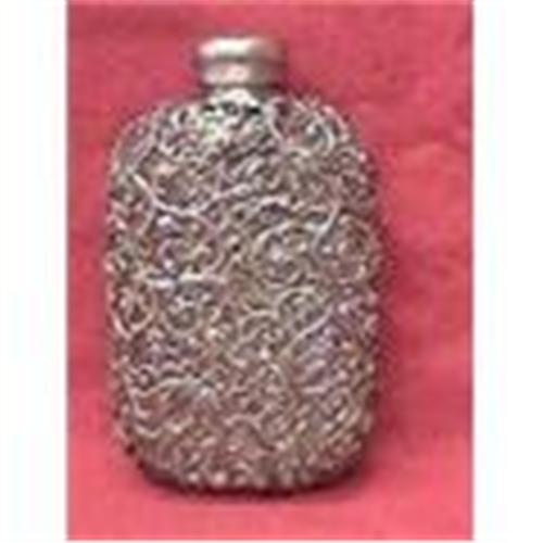 This is a very nice Glass Flask with Pewter overlay decorated in shape of leaves and branches and on the top there is an H initial . There is normal wear on silver gilt.