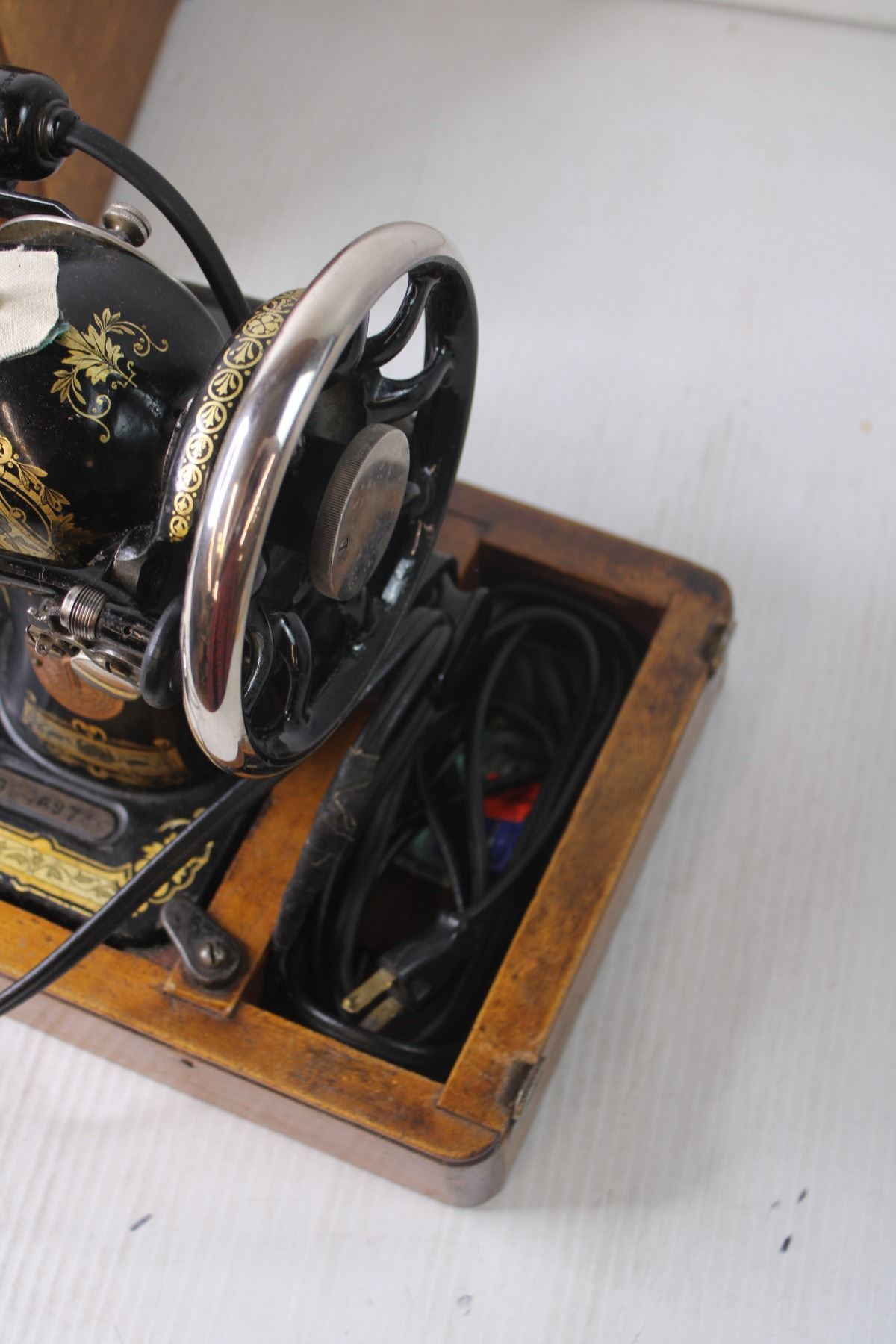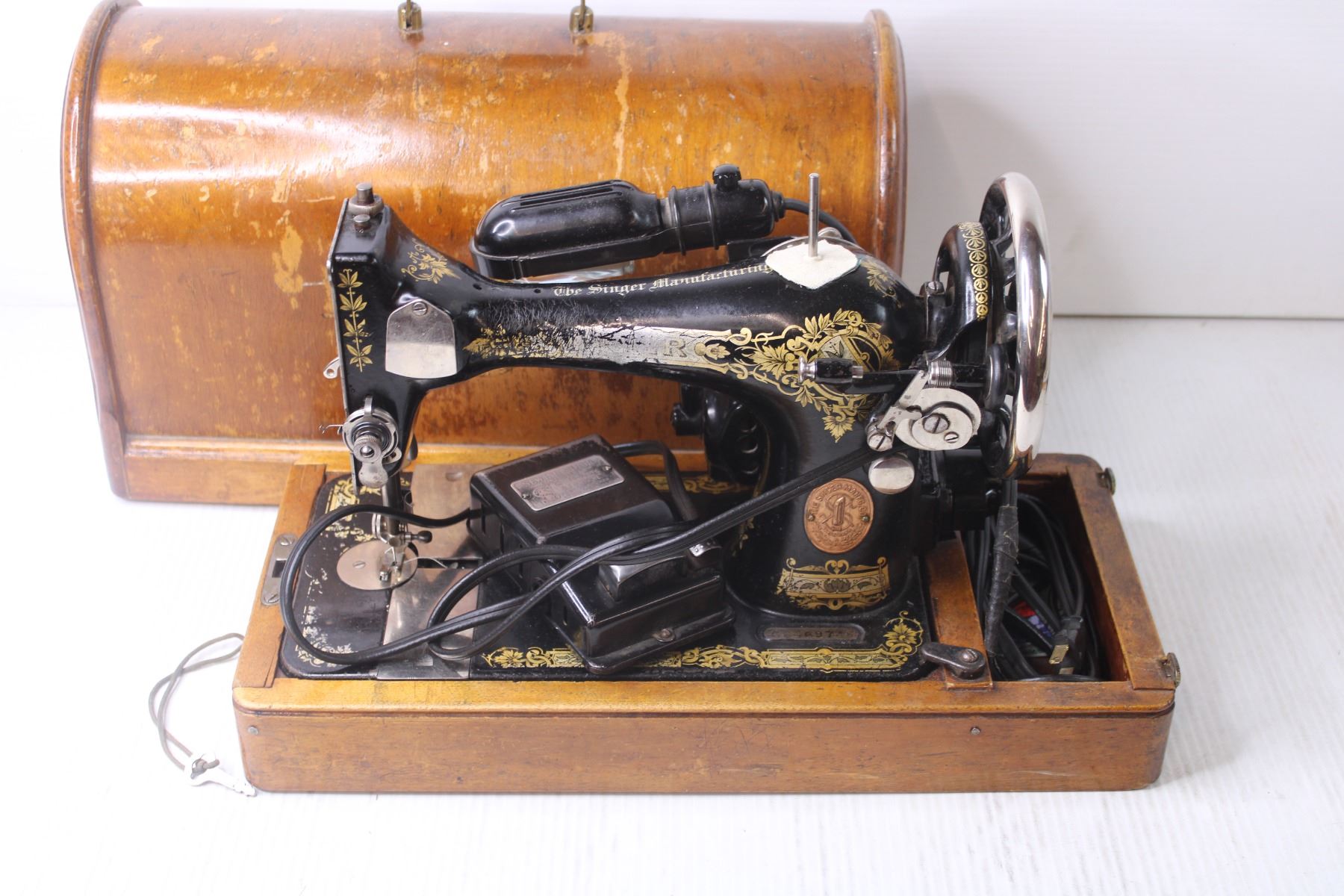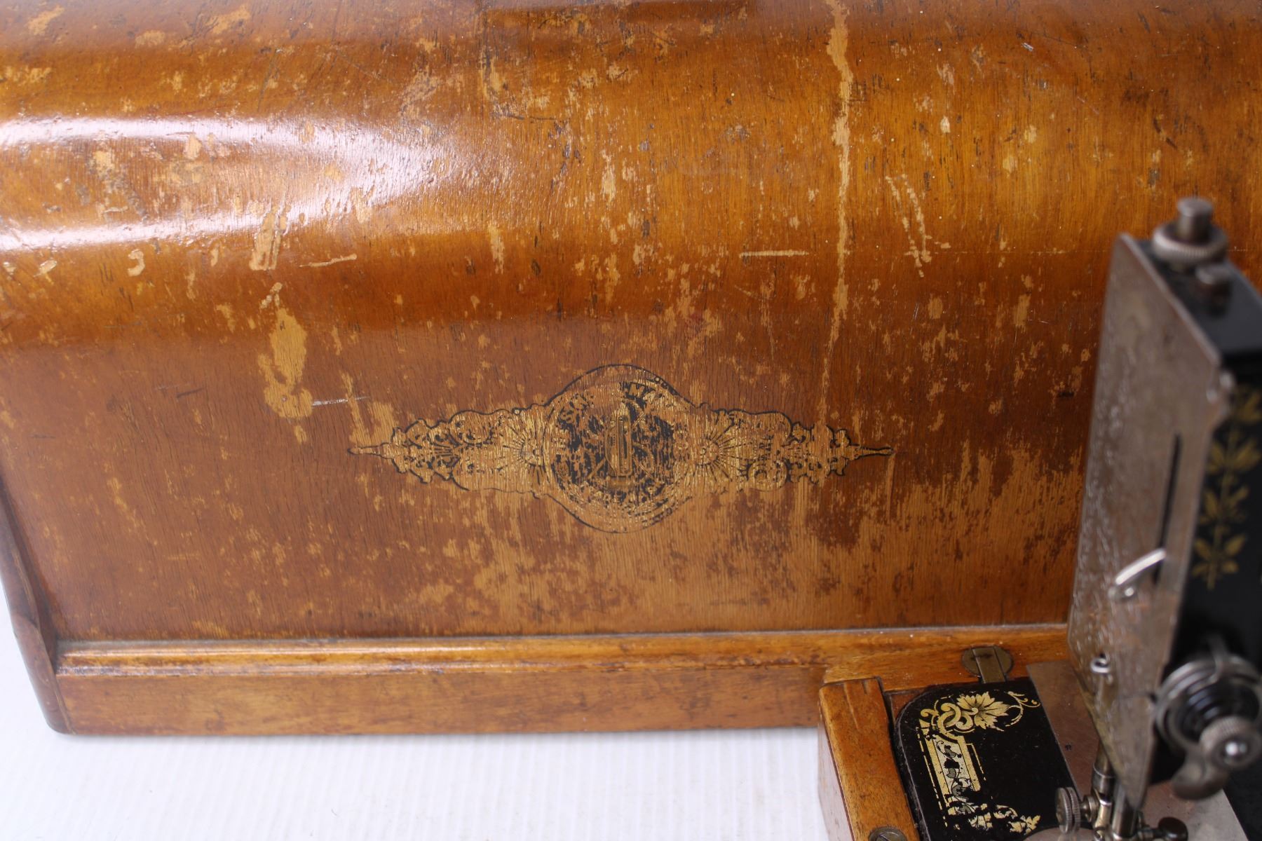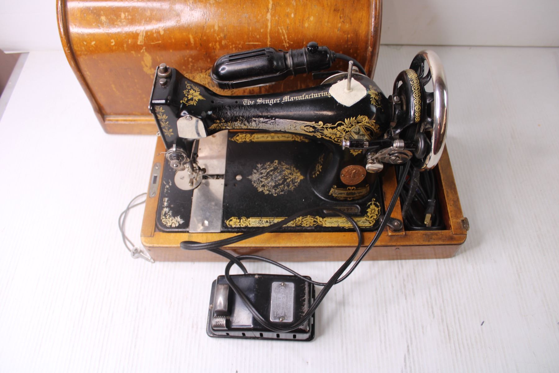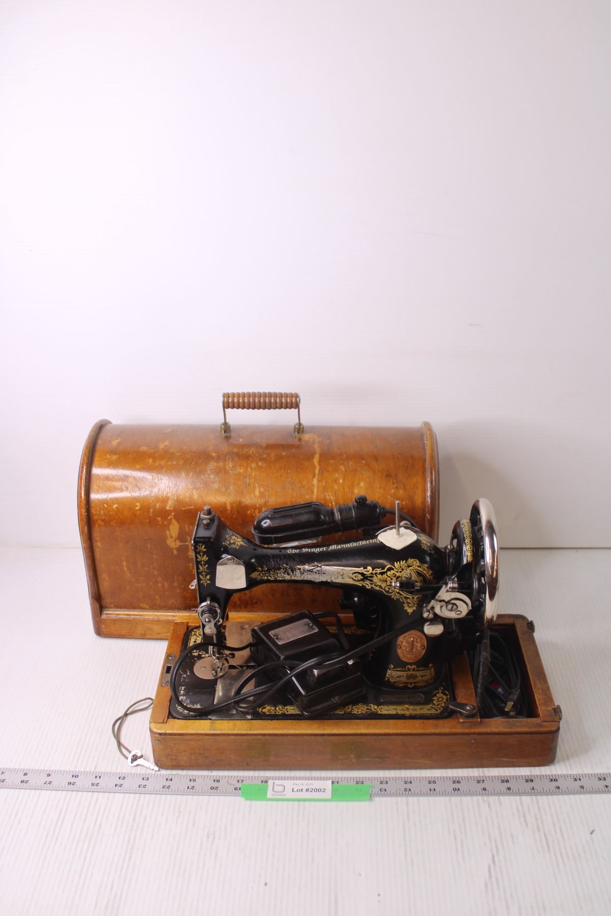 *Antique Singer Sewing Machine in Wooden Case with Key