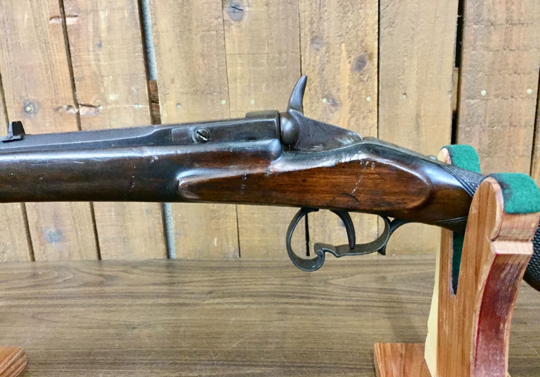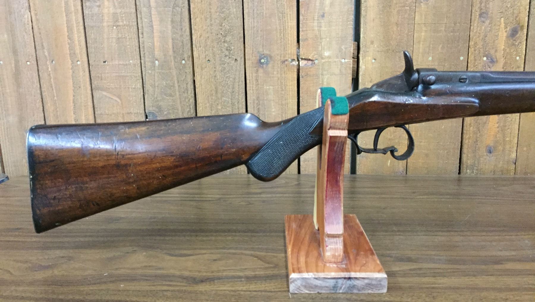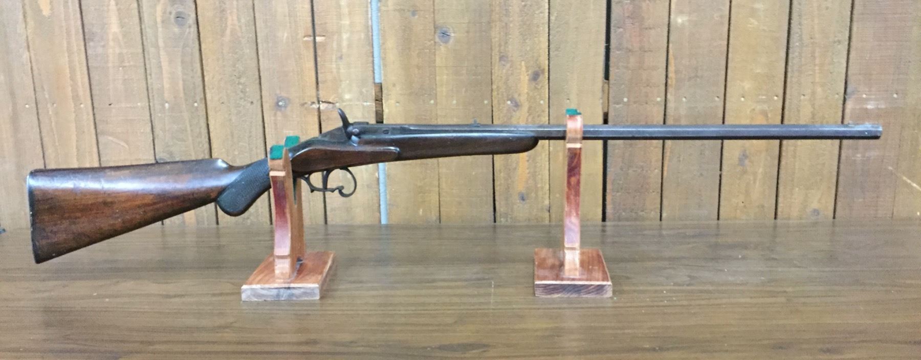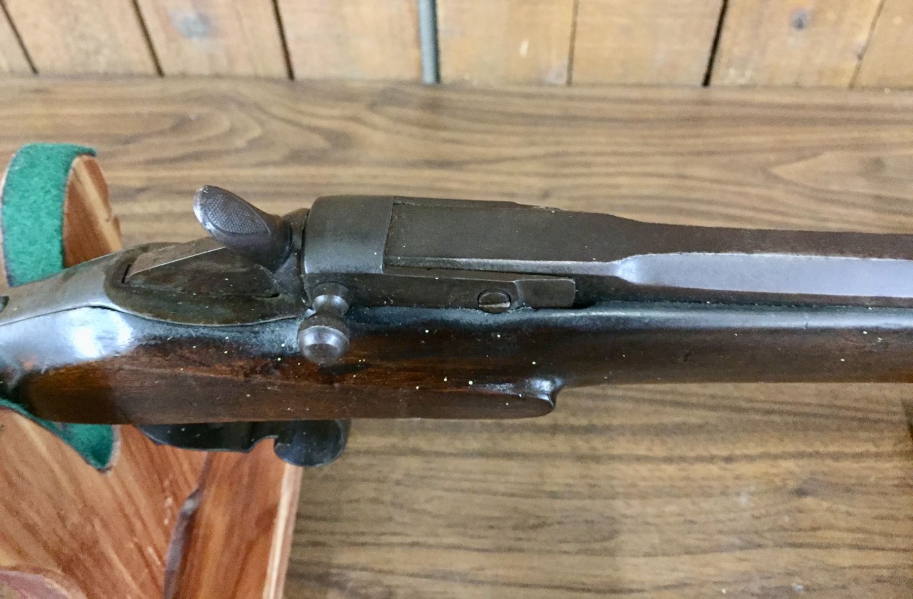 Description: For sale in this lot is an antique single shot .22 caliber rifle featuring an octagon barrel and original wood stock. This is a unique little breech loading rifle with a checker pistol grip stock. We found no markings on it. Maker: Unknown. Approx. Age: Circa late 1800s. Size: Barrel measures about 22†with an overall length of 38-1/2â€. Condition: Pretty good for its age, some wear expected. Please look closely at the pictures - they are an important part of our description. Shipping: There will be a $15 handling / packaging fee for shipping this lot. The actual cost of postage will be added on top of that. cost of postage will be added on top of that. *****This firearm is ANTIQUE and DOES NOT require an FFL Transfer*****