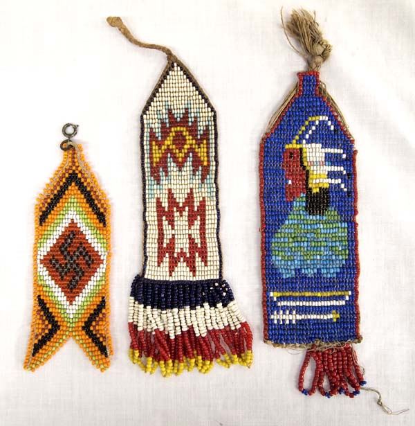 Antique Native American Sioux Beaded Watch Fobs, longest measures 6'' x 2''W