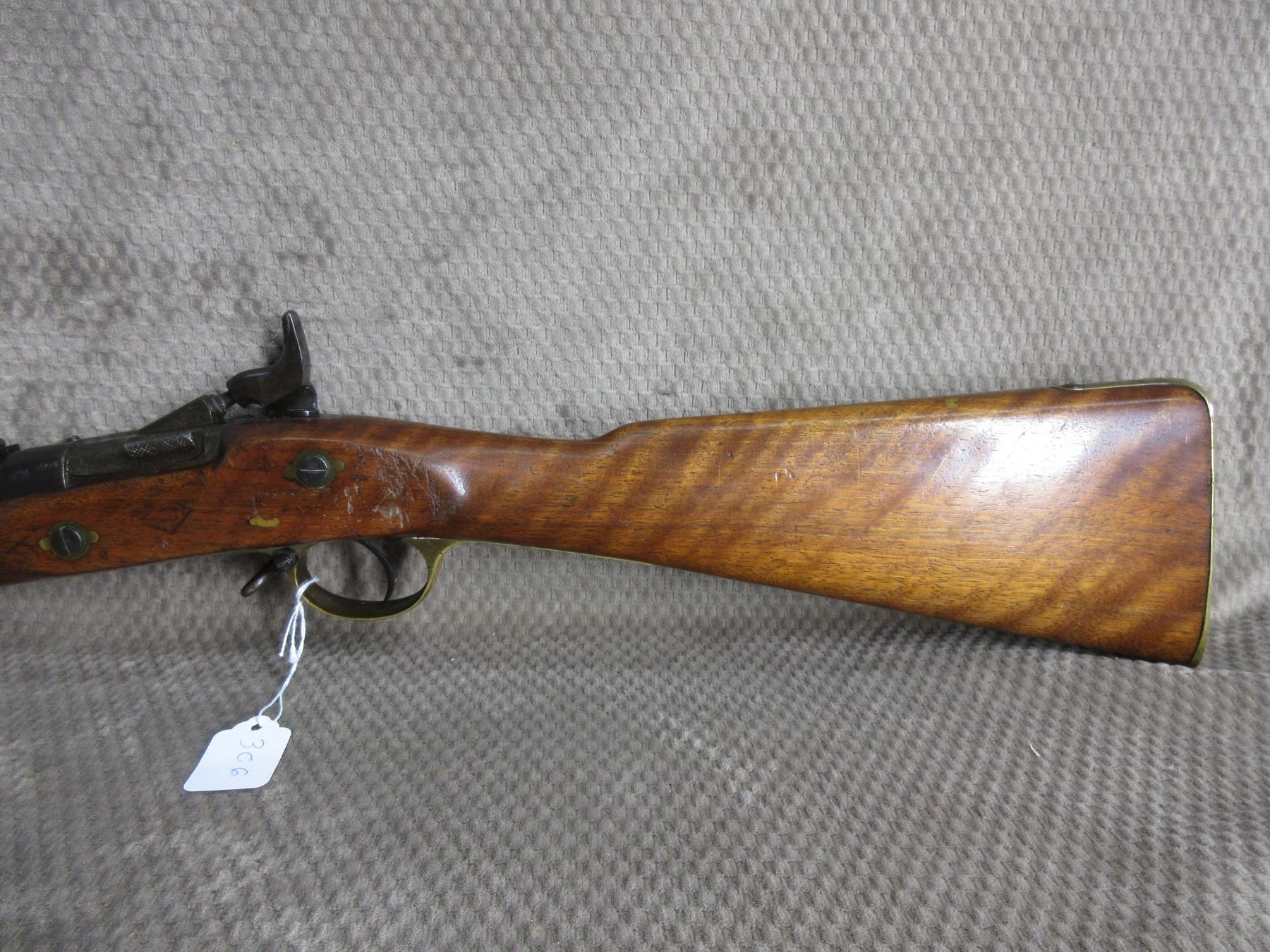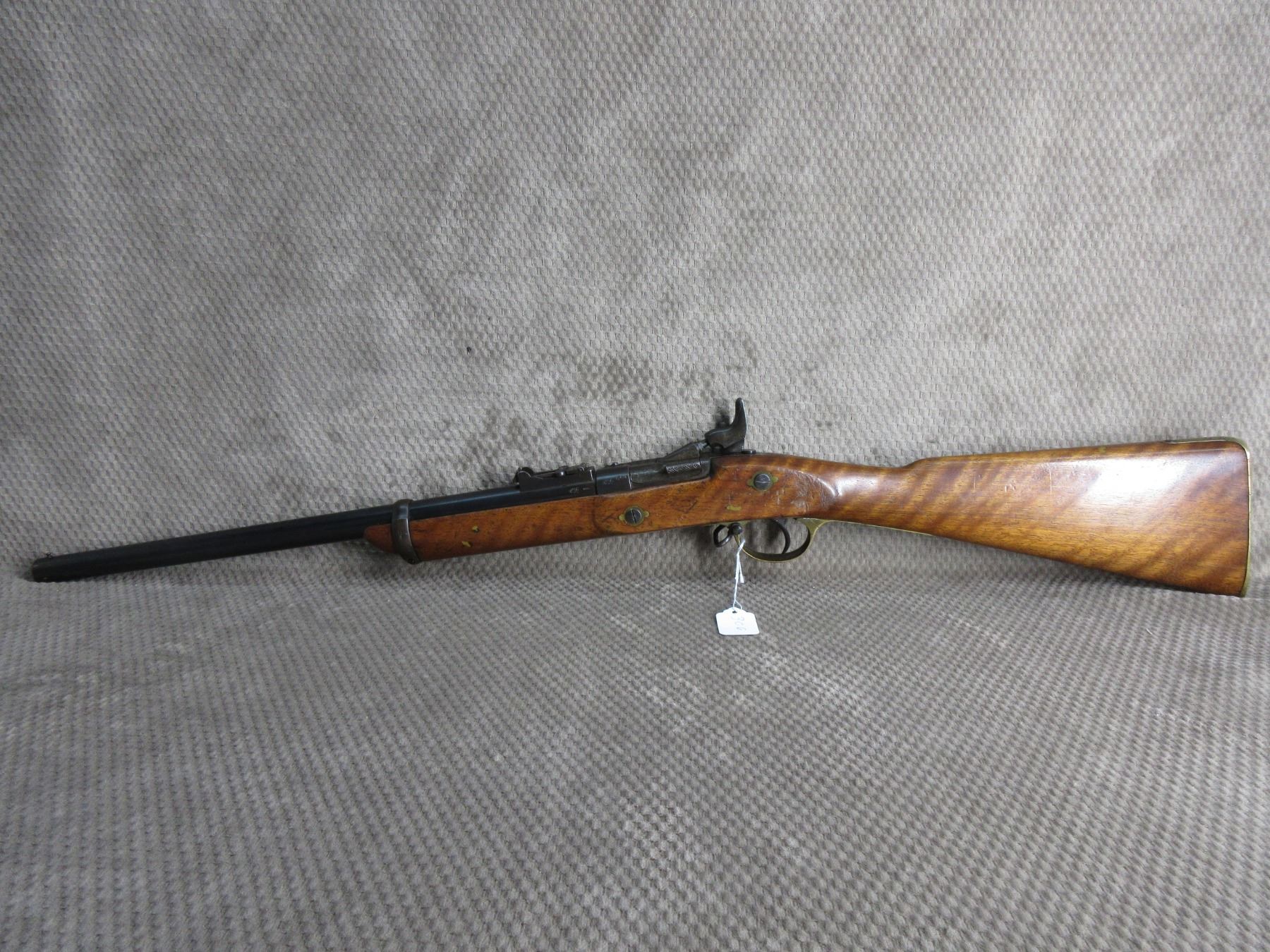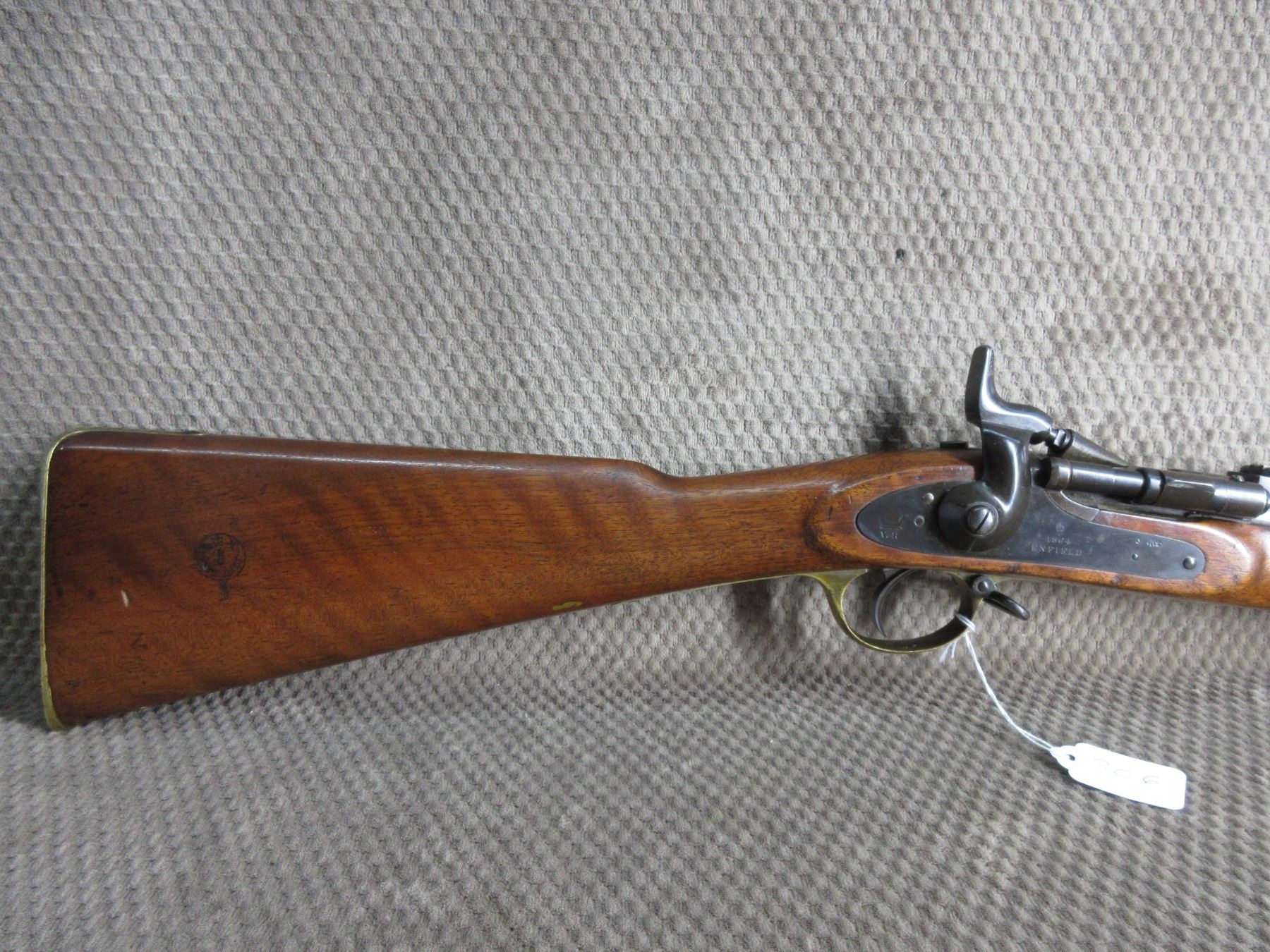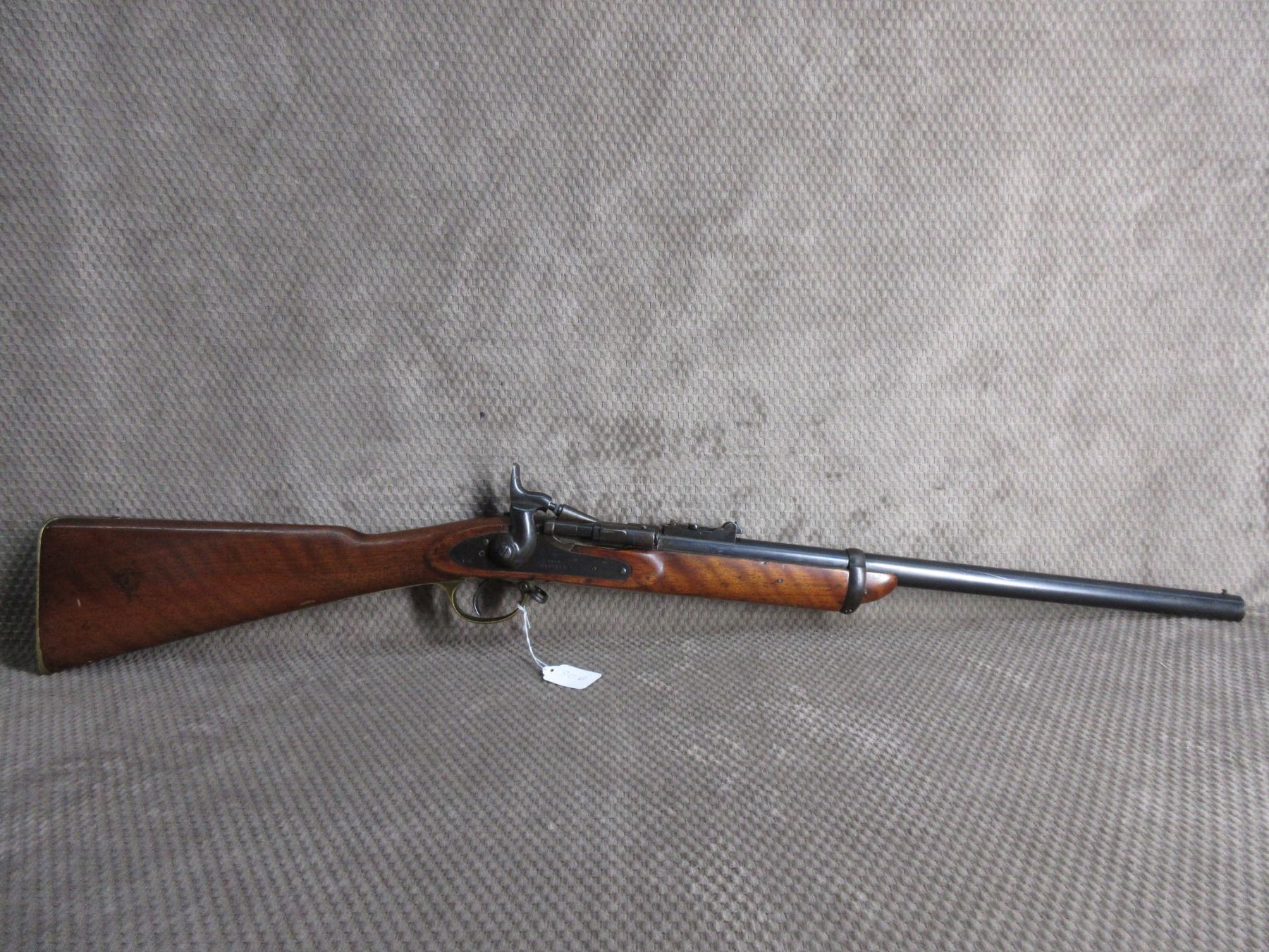 Antique - Snider Enfield Carbine in 577 Snider - This single shot rifle is in good working order. Bluing is good to very good, rifling is good to very good until the last 8 where it has some pitting, has both sights, wood appears to be good with usually marks for its age.