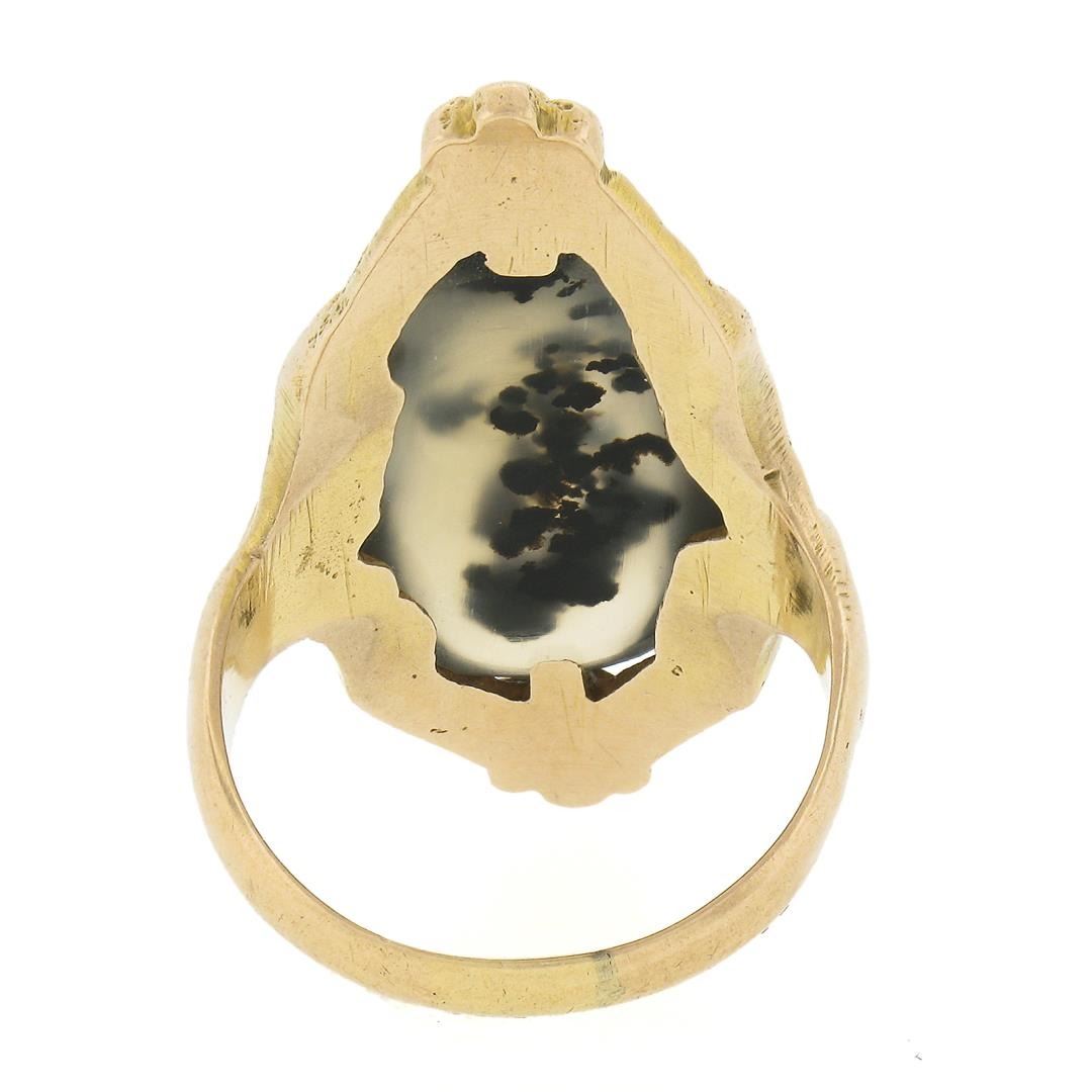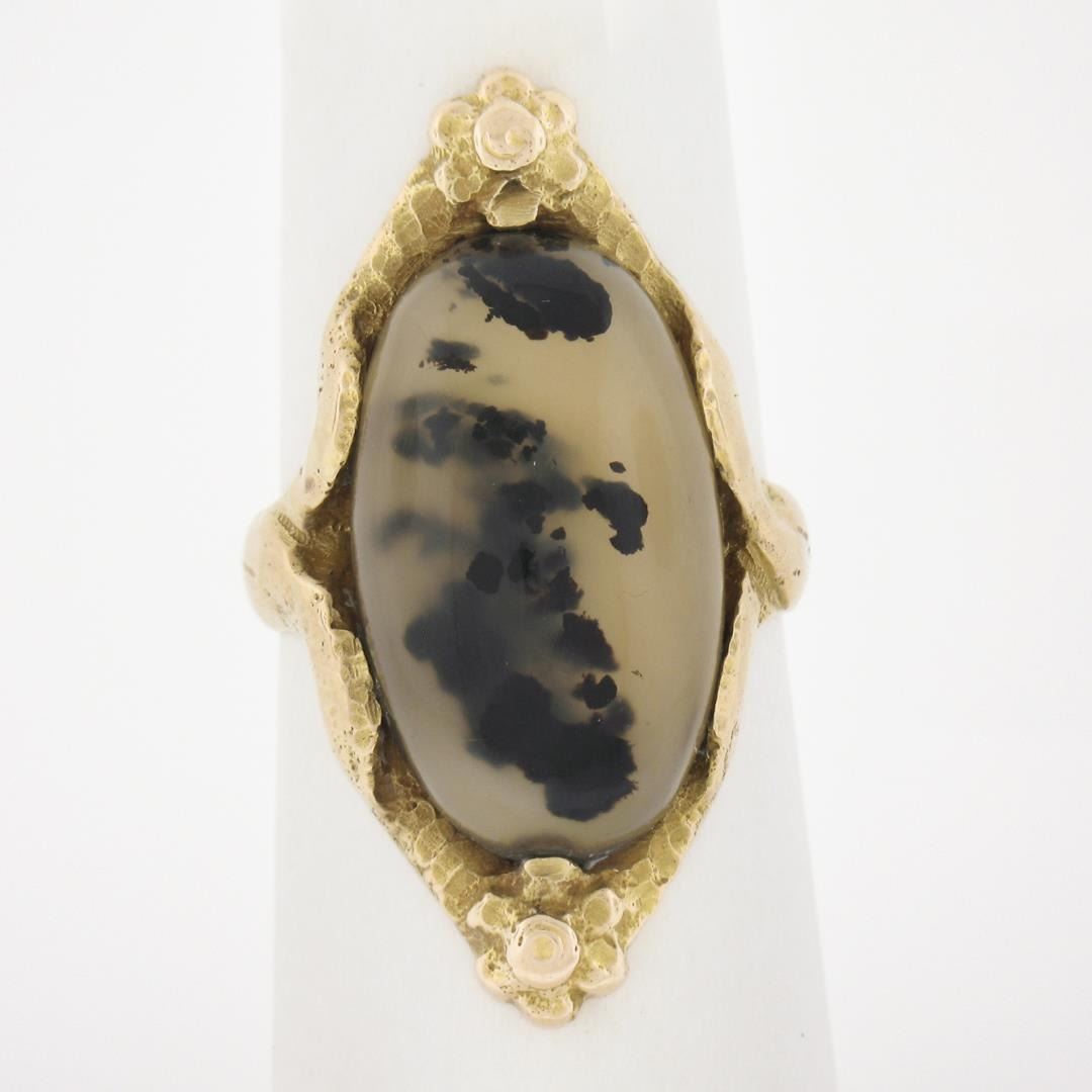 Antique Solid Gold 20x11.8mm Cabochon Prong Moss Agate Solitaire 3D Floral Ring