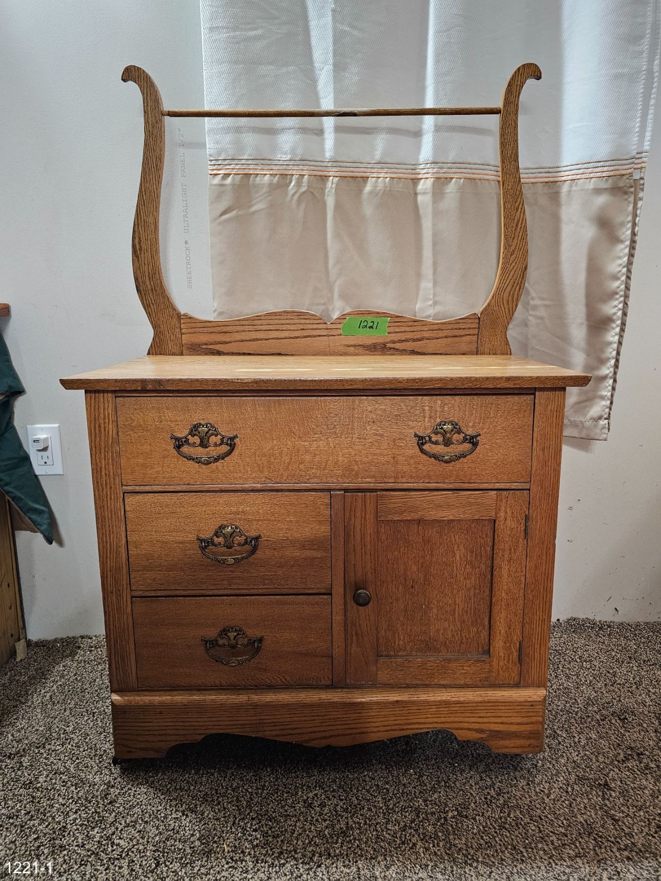 Antique Solid wood 'Harp' Wash Stand in good condition with original hardware.