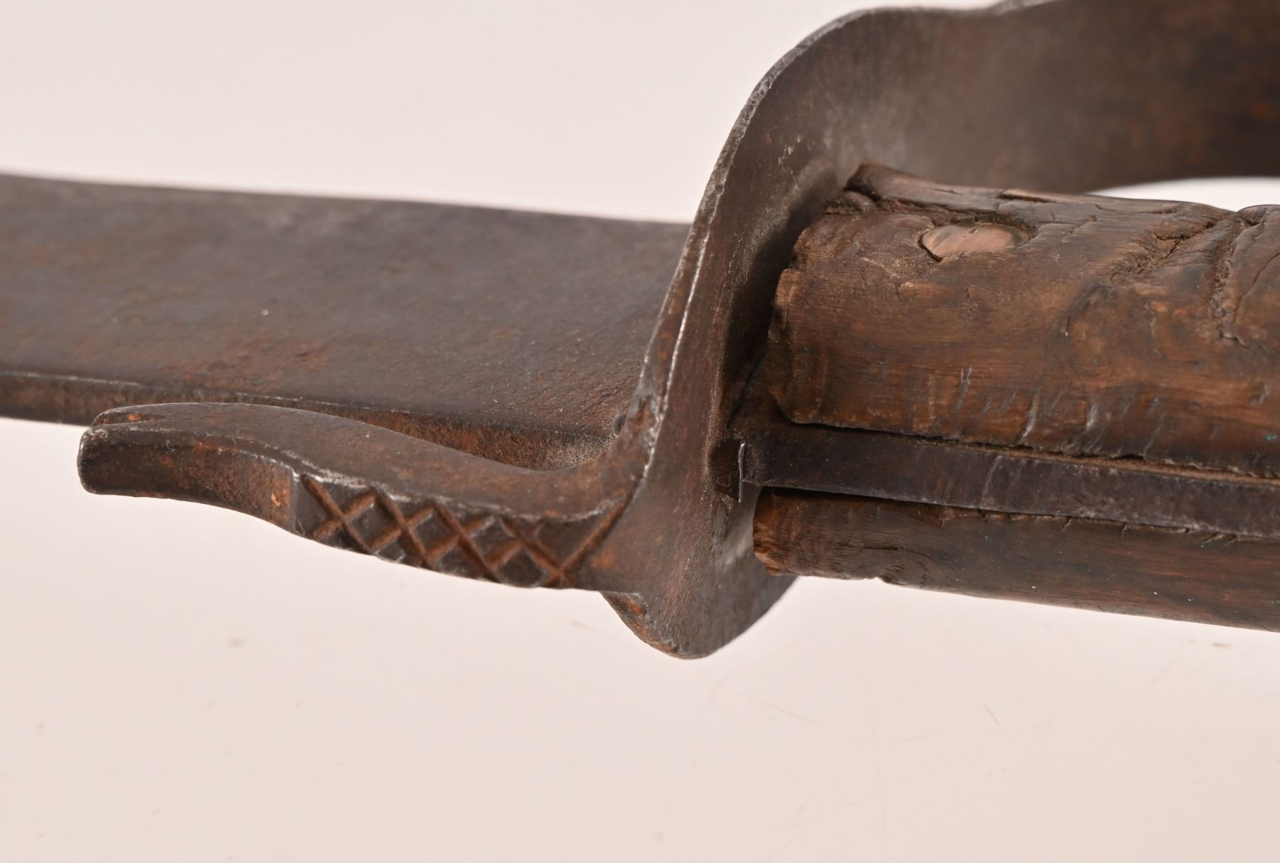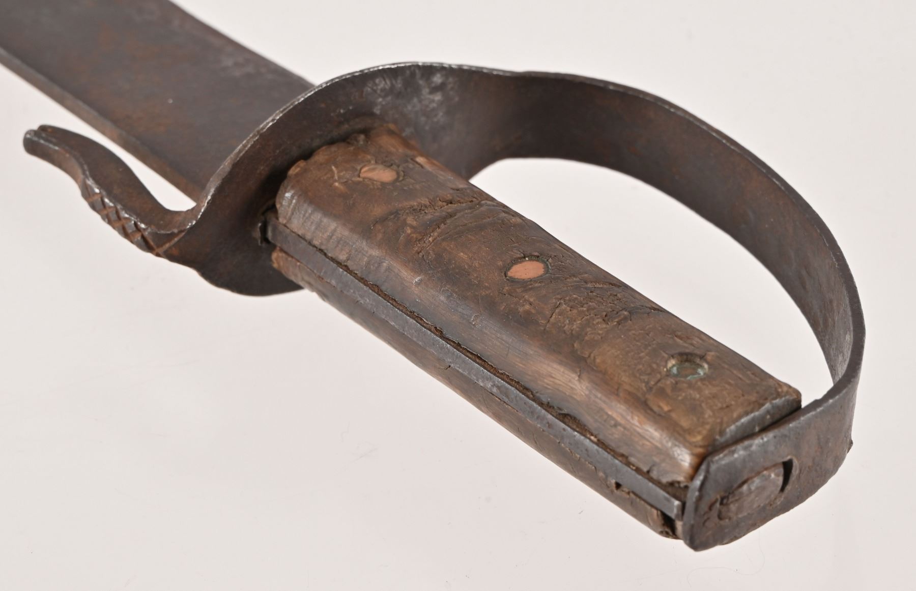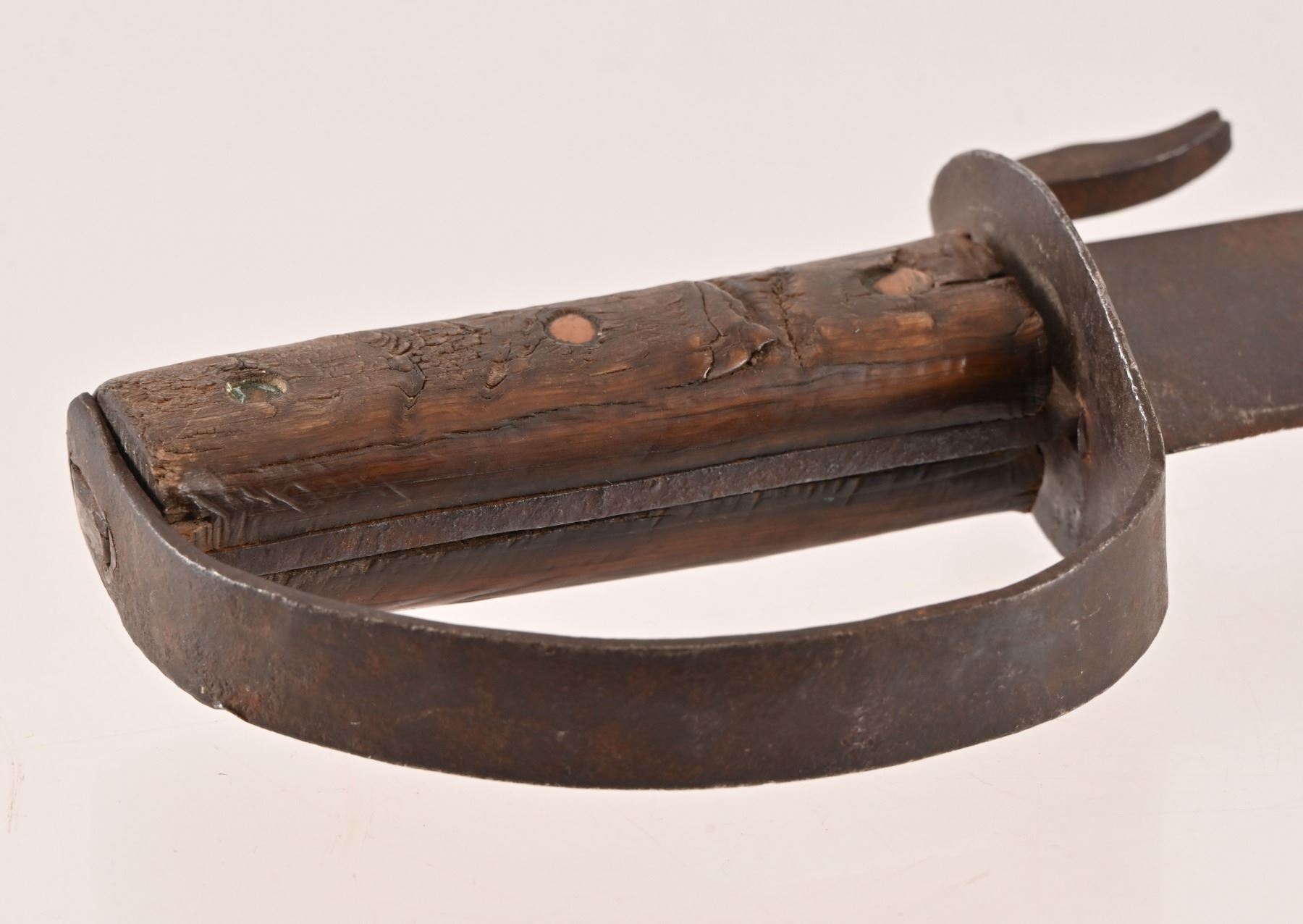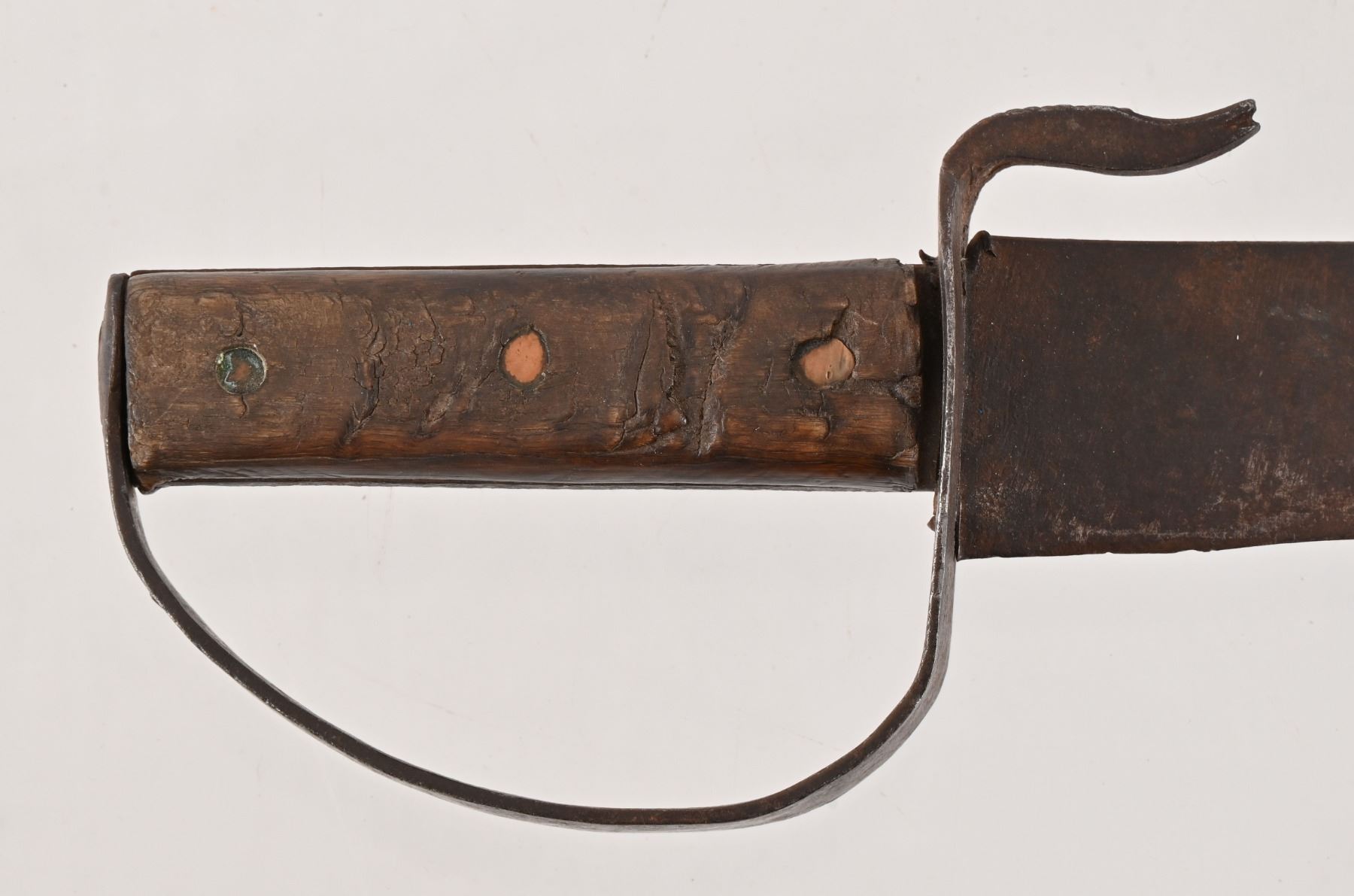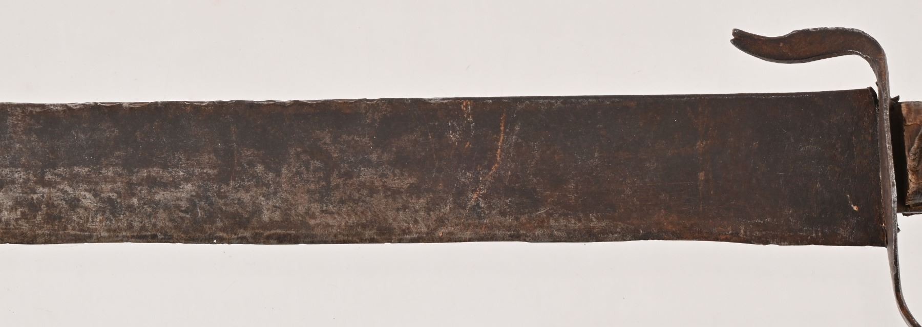 Hand-forged 22.75" blade, 25.25" overall length. D-guard with horn handle.