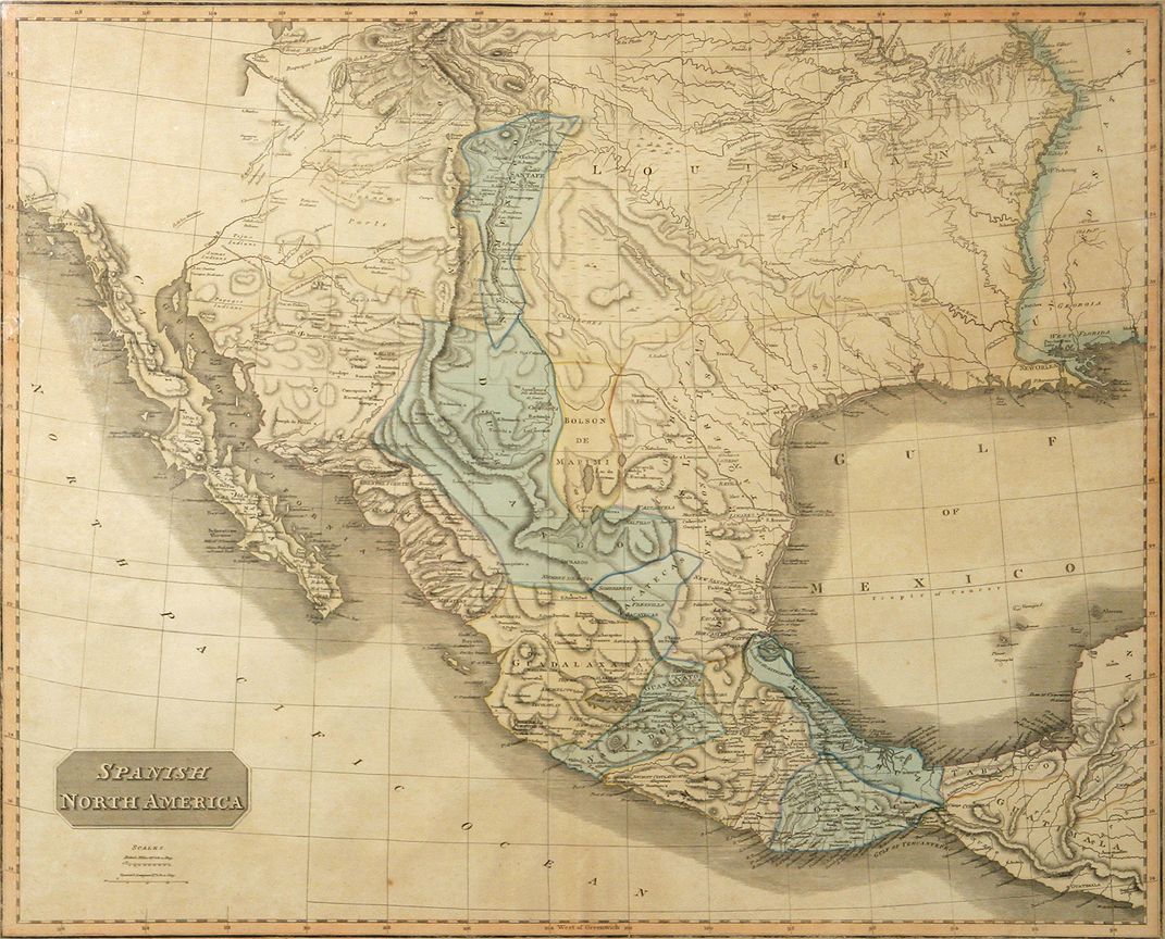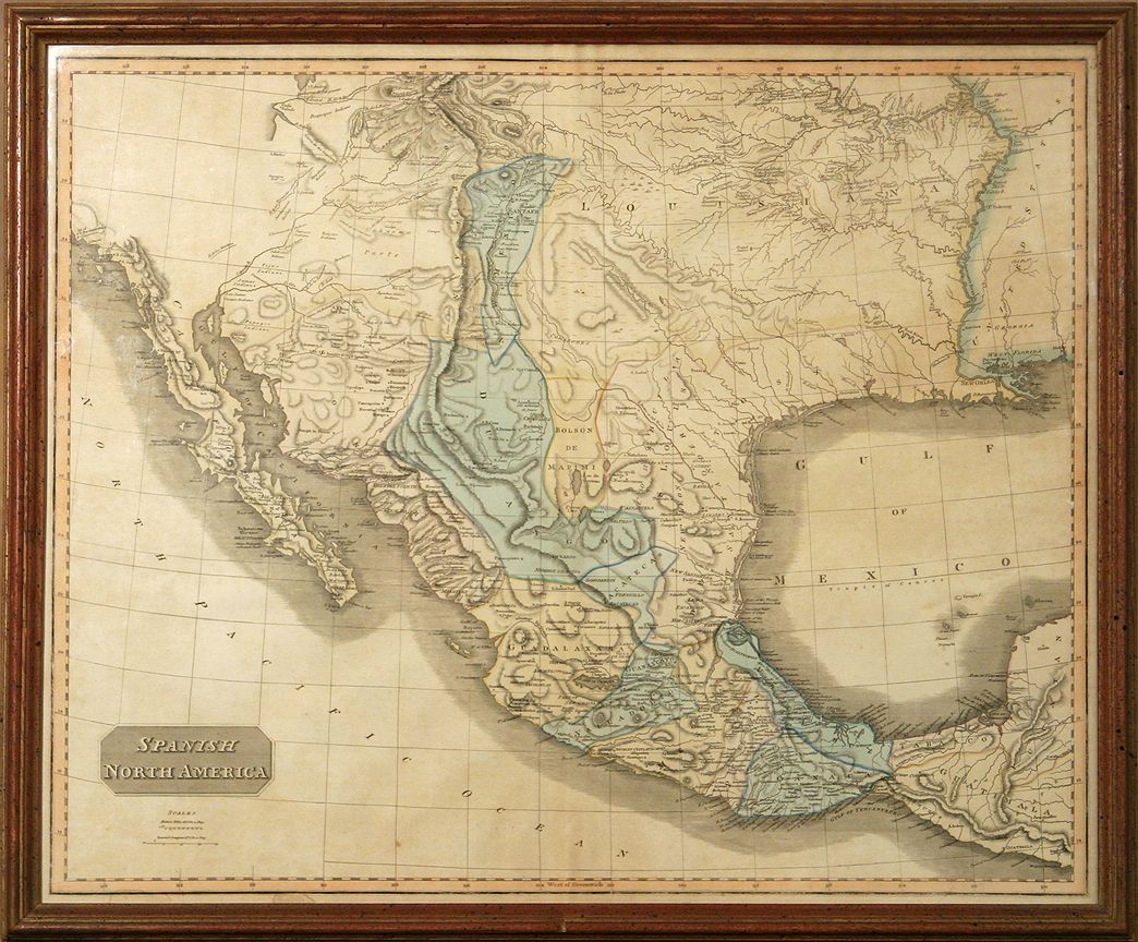 Antique Spanish North American Map. Highlighting Santa Fe & Albuquerque, 19" x 24". (est. $1,000-1,500). CONDITION REPORTS: www.auctioninsantafe.com/docs/cr2012.pdf