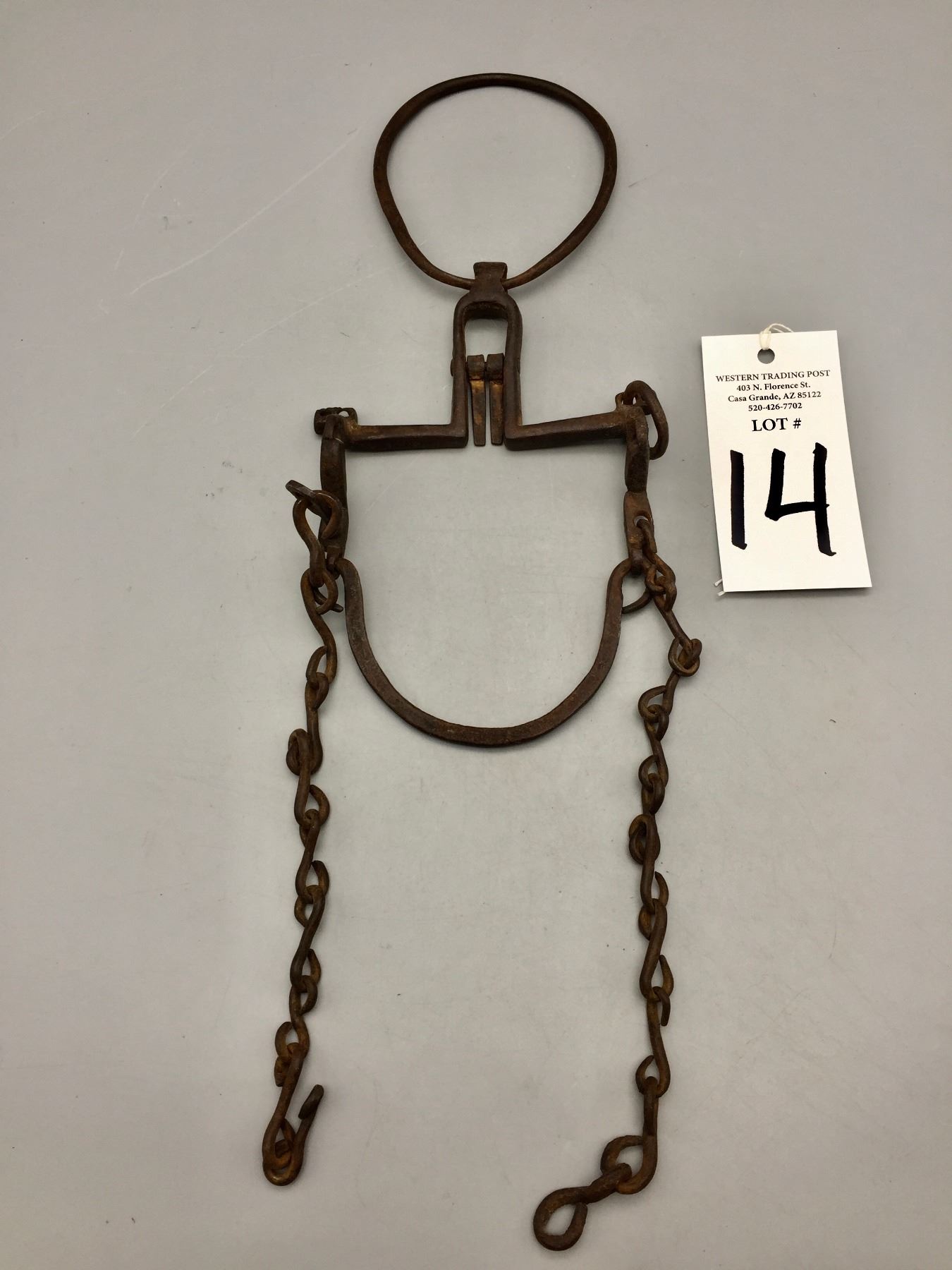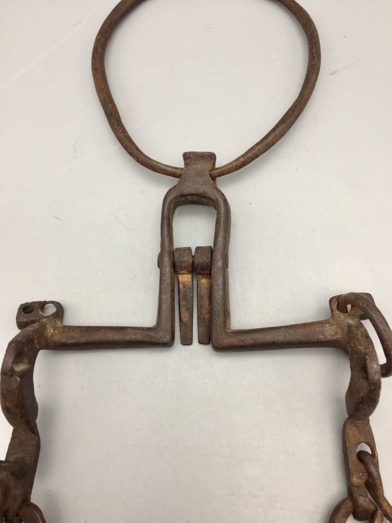 Description: For sale in this lot is an antique, hand forged, Spanish ring bit. It has the rein chains still attached. Maker: Unknown. Approx. Age: Antique. Size: Mouth 4” Shank 3” Condition: Good for its age, normal wear expected. Please look closely at the pictures - they are an important part of our description. Shipping: There will be a $5 handling / packaging fee for shipping this lot. The actual cost of postage will be added on top of that.