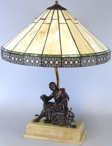 William Shakespeare and featuring a fine lead and stained glass lamp shade in excellent condition. Circa 1930's-40's