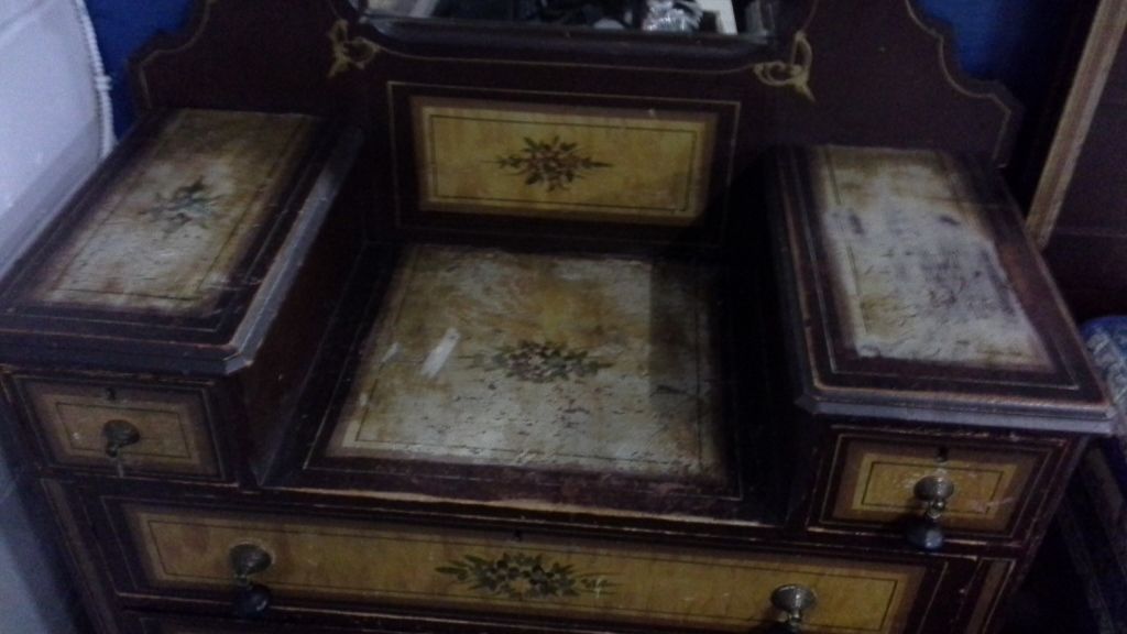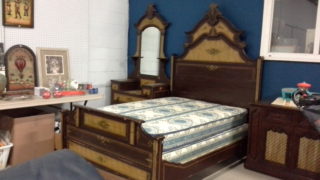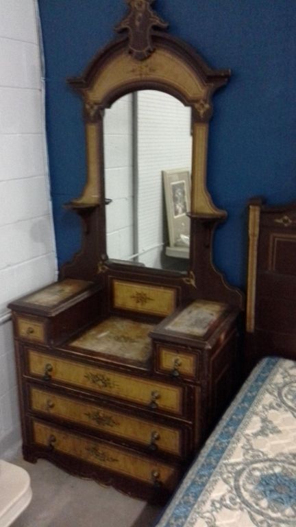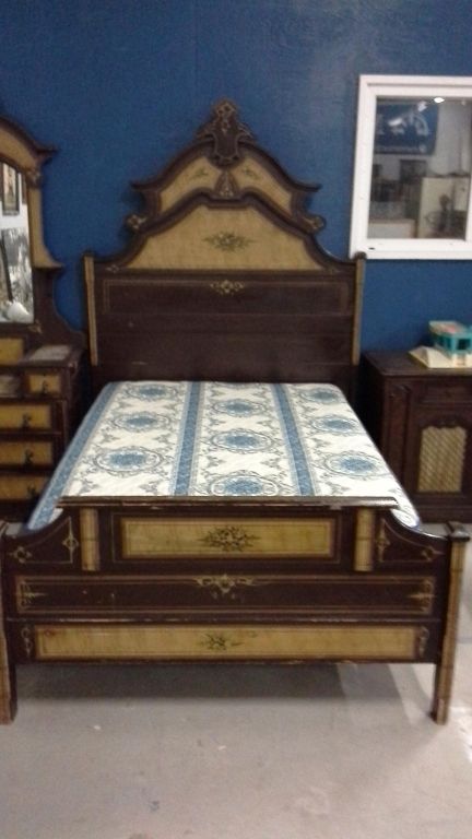 Antique Stenciled 3/4 Size Bed, Dresser With Mirror and Box Spring/Mattress