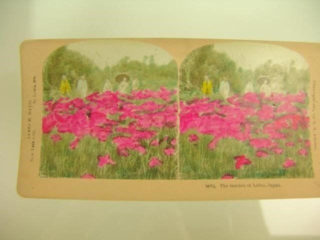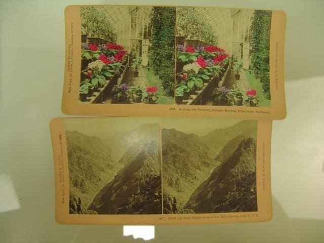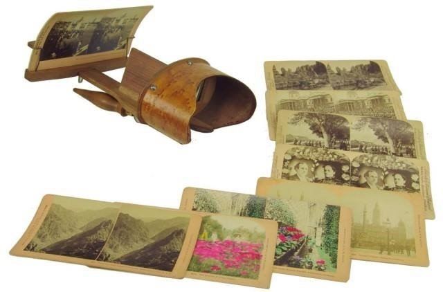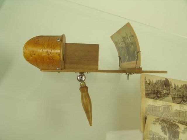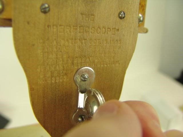Early, USA made, adjustable focus "PERFECSCOPE" card viewer with nine, James M. Davis photo cards taken in the US and other famous places in the world. Very good Condition.