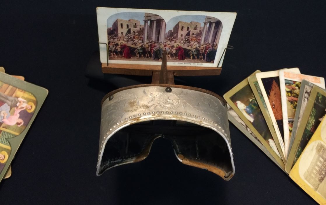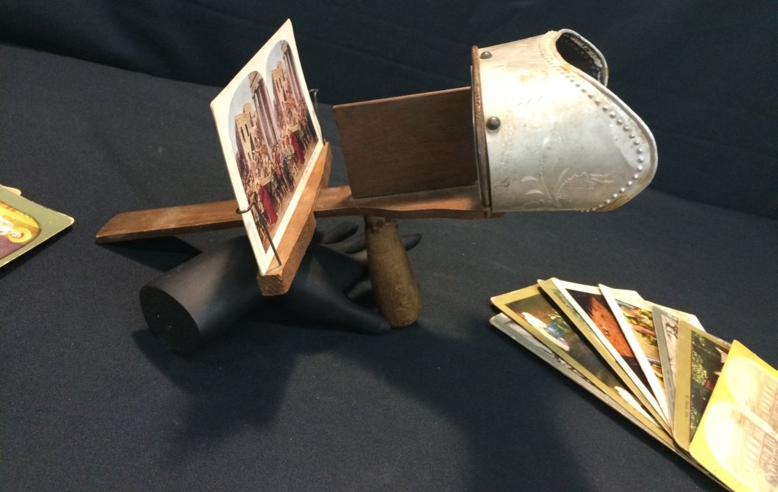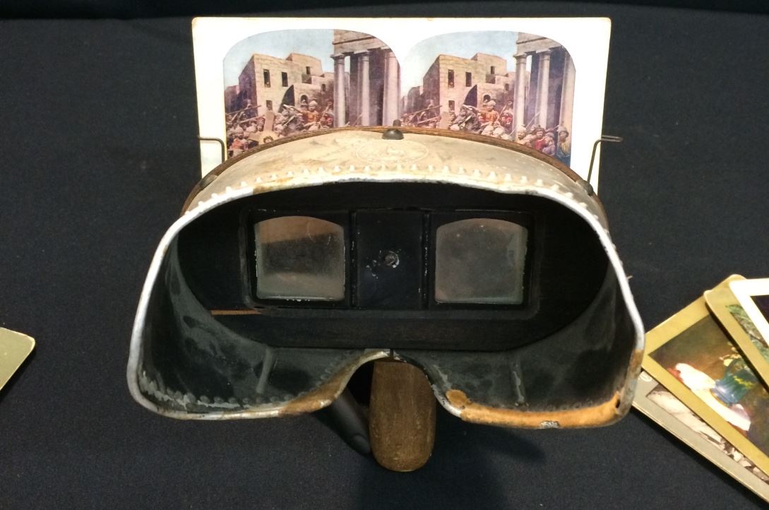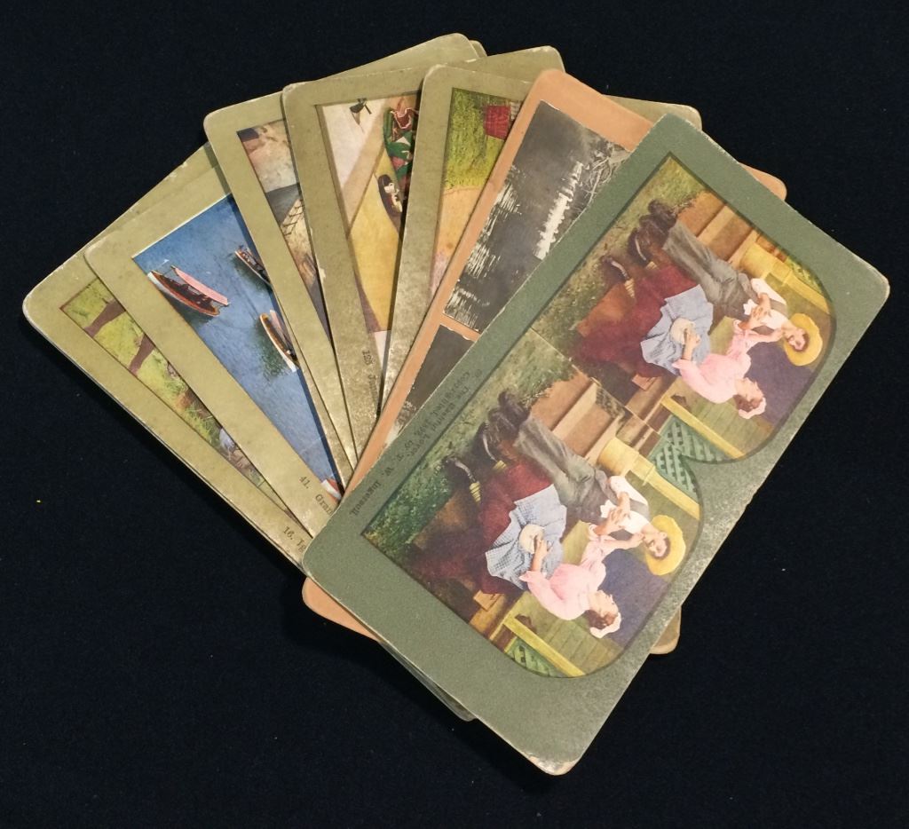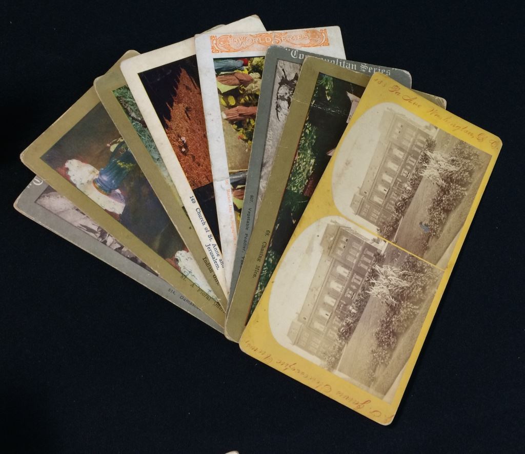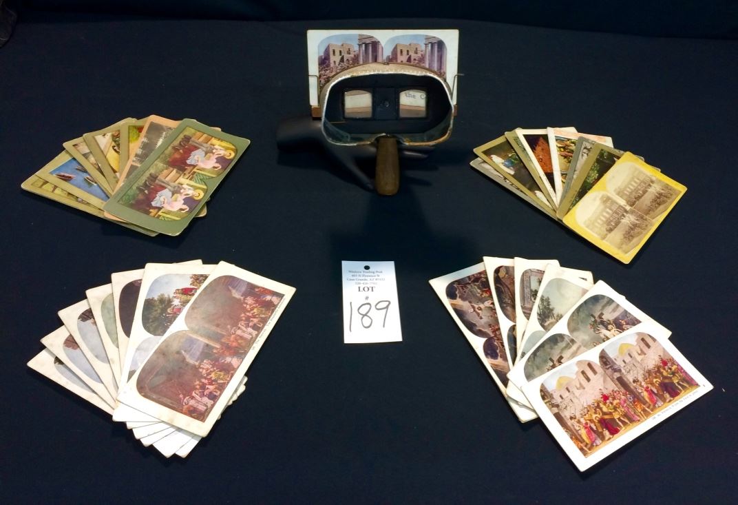 Circa 1904 Monarch 3-D stereoscope viewer with 33 different viewer cards included. This was part of the old Frontier Relics Museum inventory.