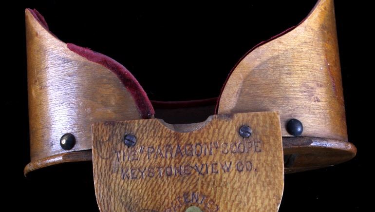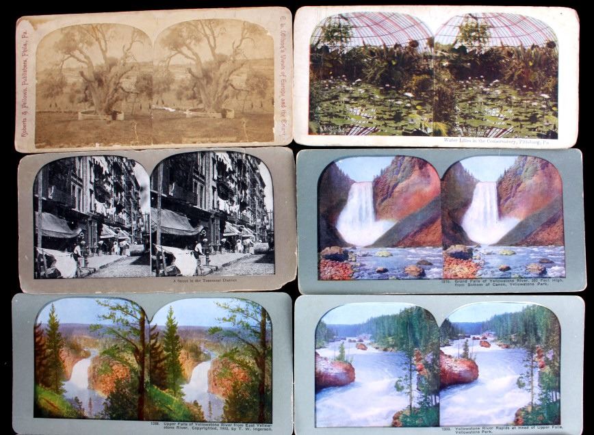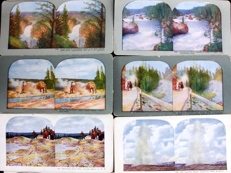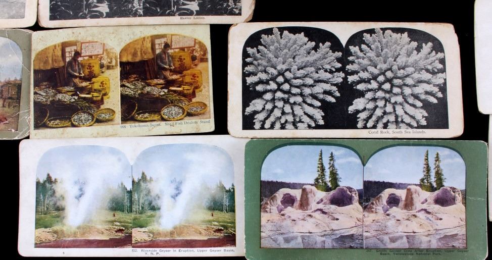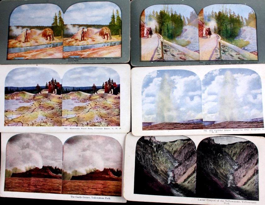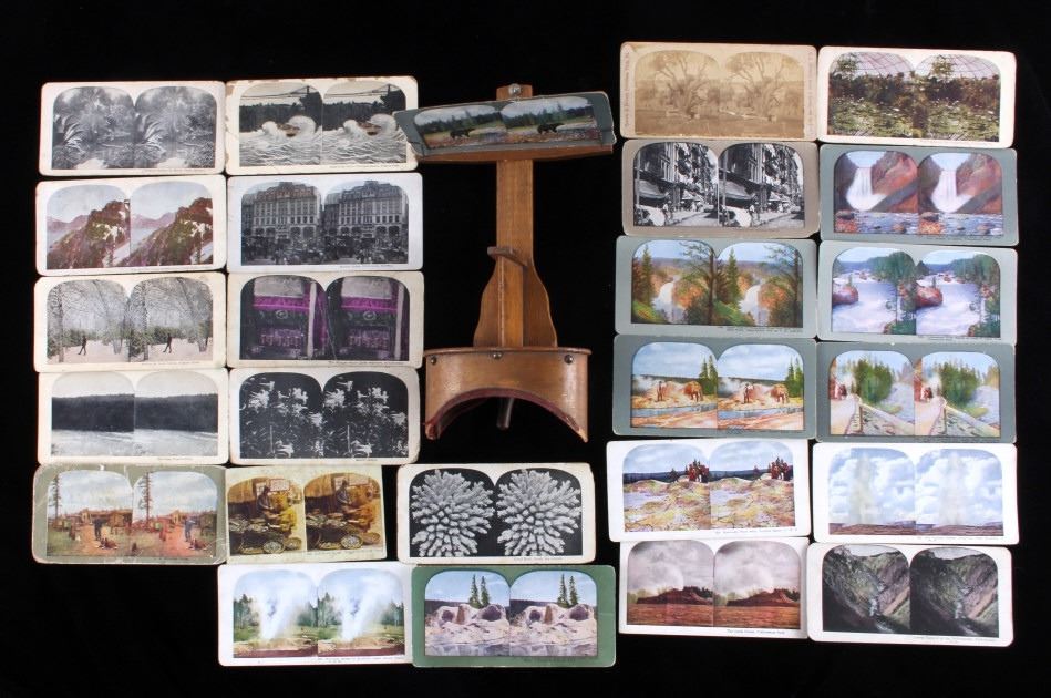 This is an antique stereoviewer and stereoview collection. the viewer is marked "The Paragon Scope Keystone View Co.". Included are 26 stereoviews, 12 of which are views of Yellowstone National Park. The stereoviewer and views are in good condition. The viewer measures 5.5" x 13".