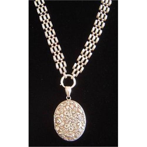 <tr><td>Title:Antique Sterling Locket with Heavy Chain</td></tr>