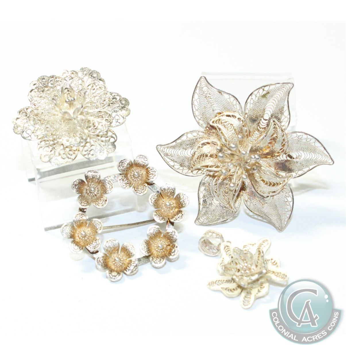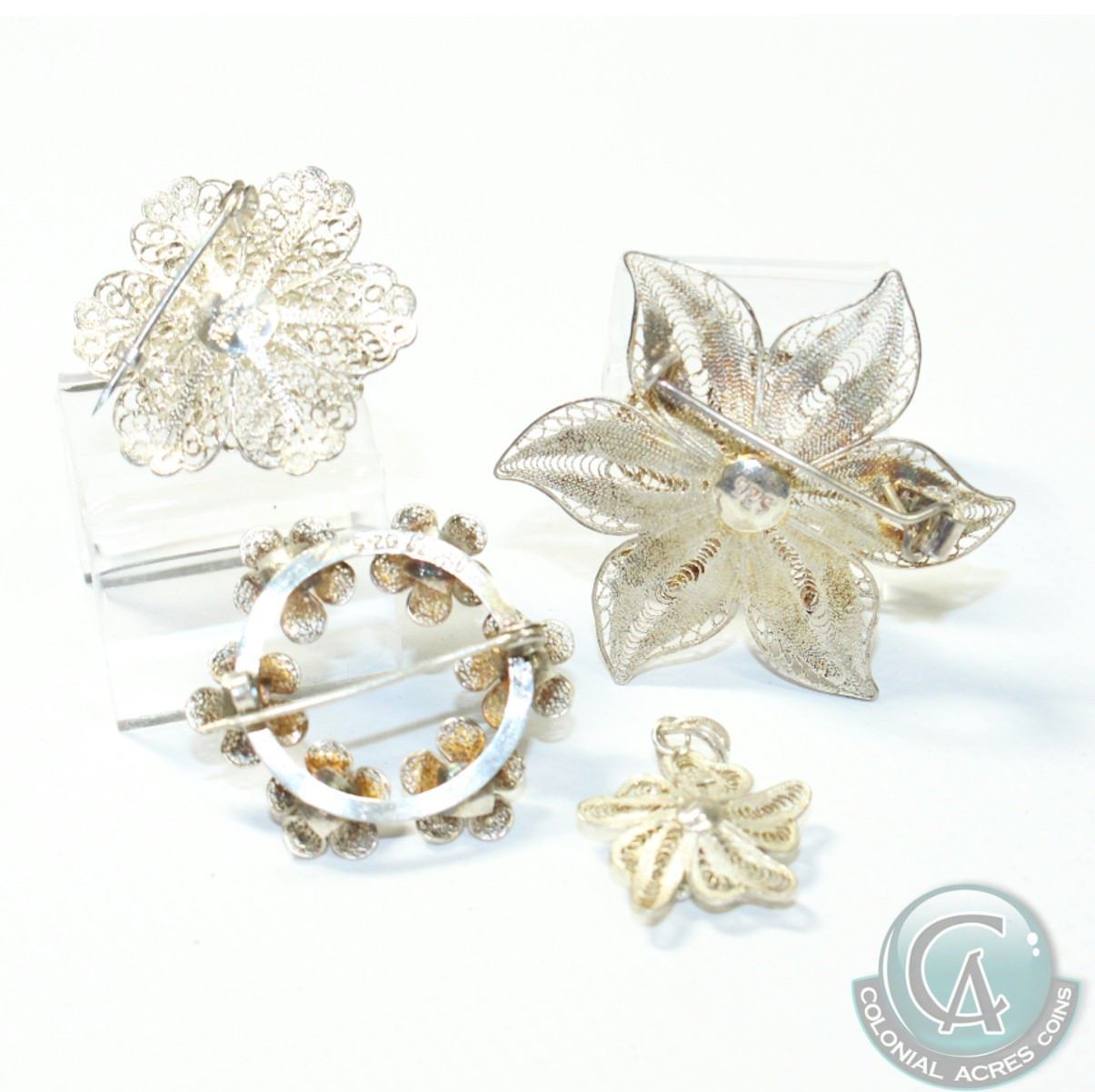 Antique Sterling Silver Filigree Pendant/Brooch Lot. You will receive 3x Brooches with 'C' Clasps & 1x Pendant. 4pcs.