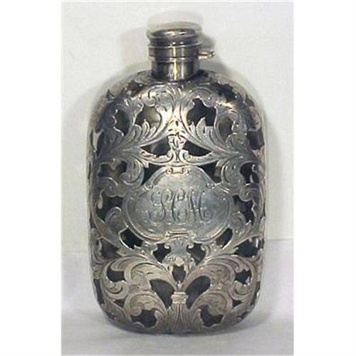 <tr><td>Title:Antique Sterling Silver Over Glass Flask </td></tr>