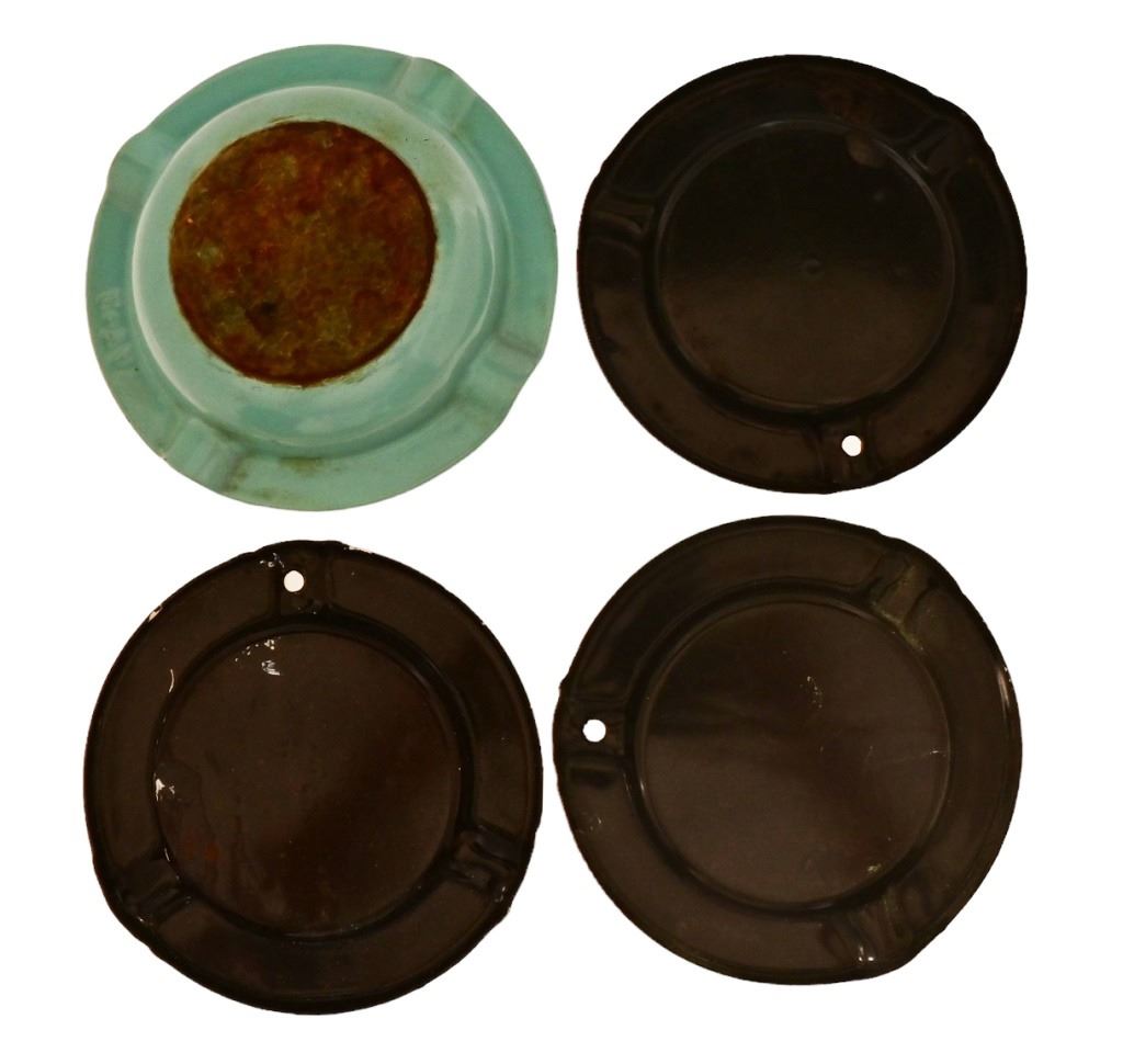 3) Porcelain Ashtrays Advertisement Enterprise Ranges Nashville, Tennessee. (1) Enamel Cast Iron Advertising Ashtray - Prizer Ranges LH Moyer & Son, Freeburg, PA. Enterprise