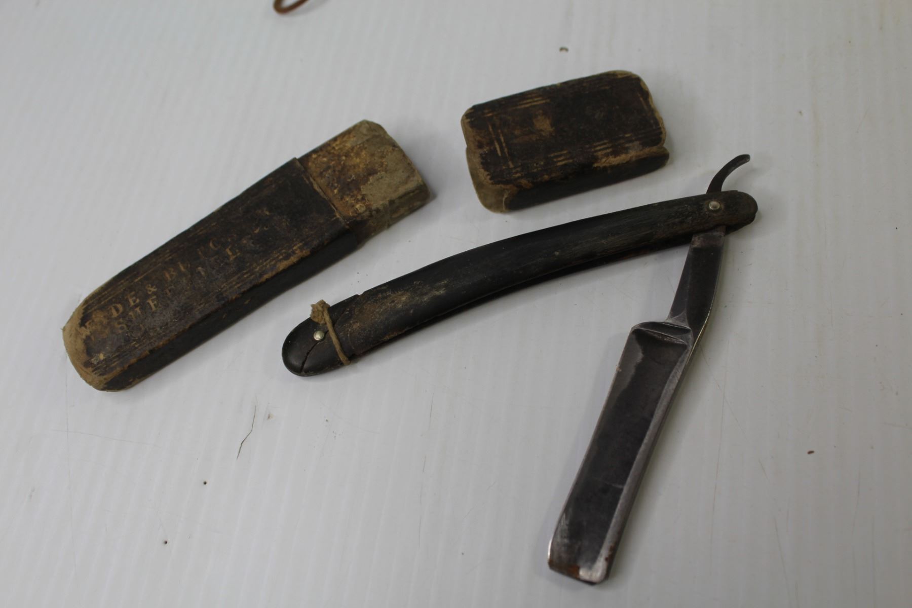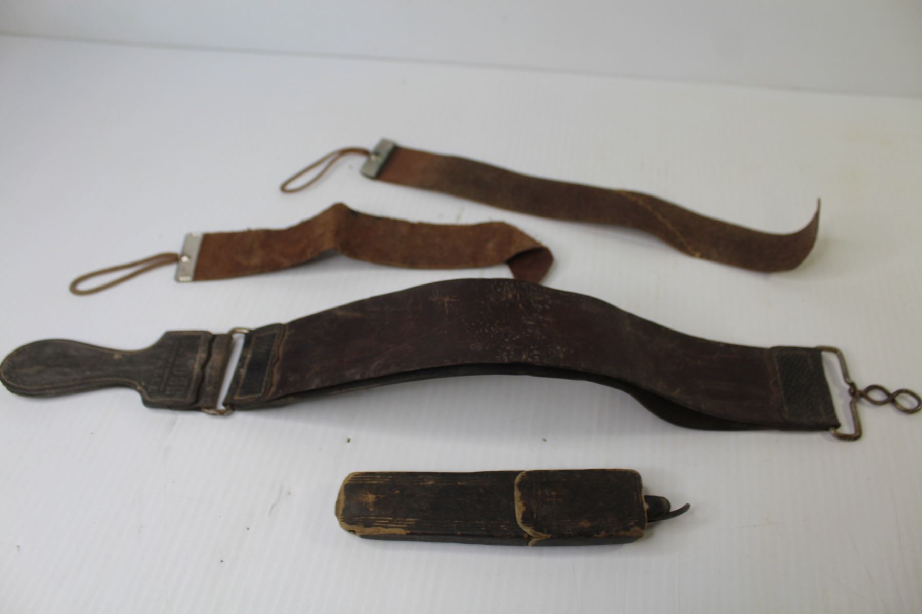 Antique Straight Razor in Box, (3) Razor Strops