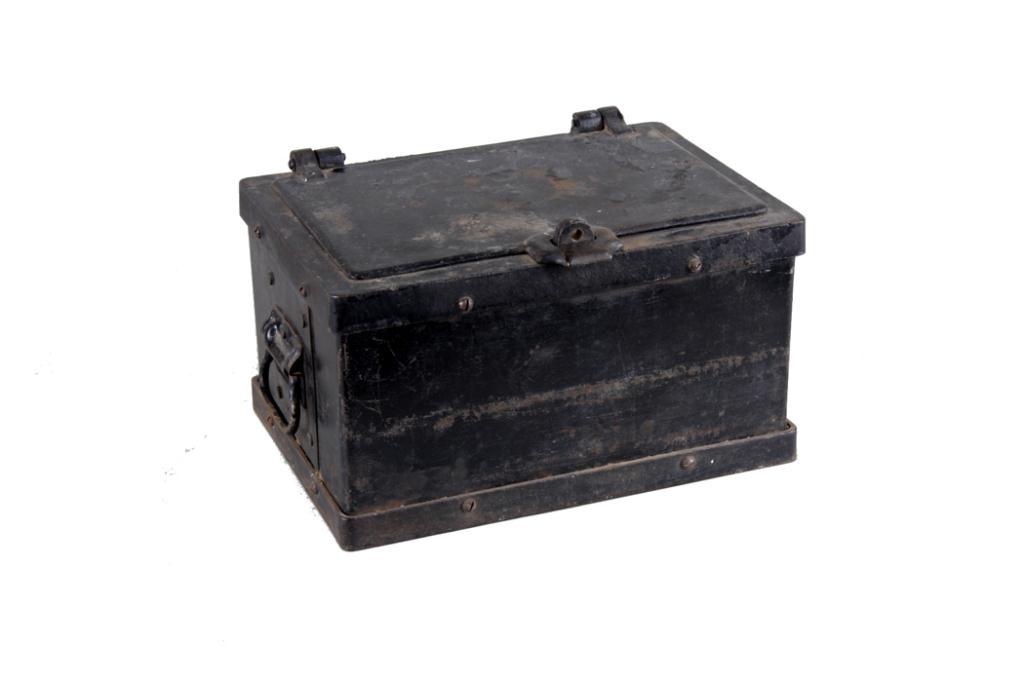 Antique Strongbox Original polychrome finish, measures 12 1/2"Lx9"Wx7"H.Original polychrome finish, measures 12 1/2"Lx9"Wx7"H.