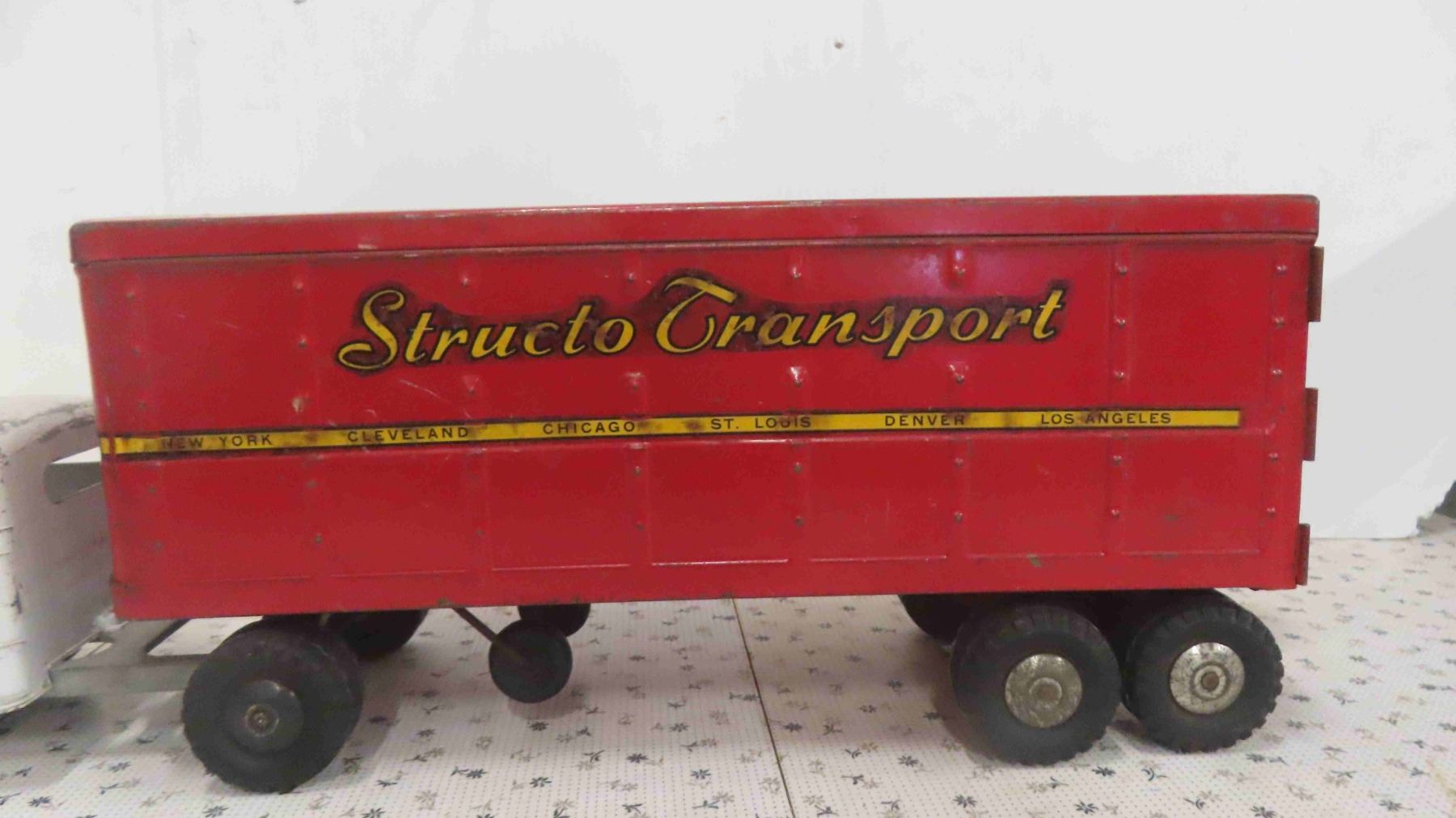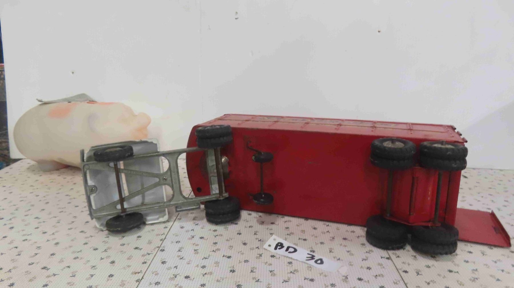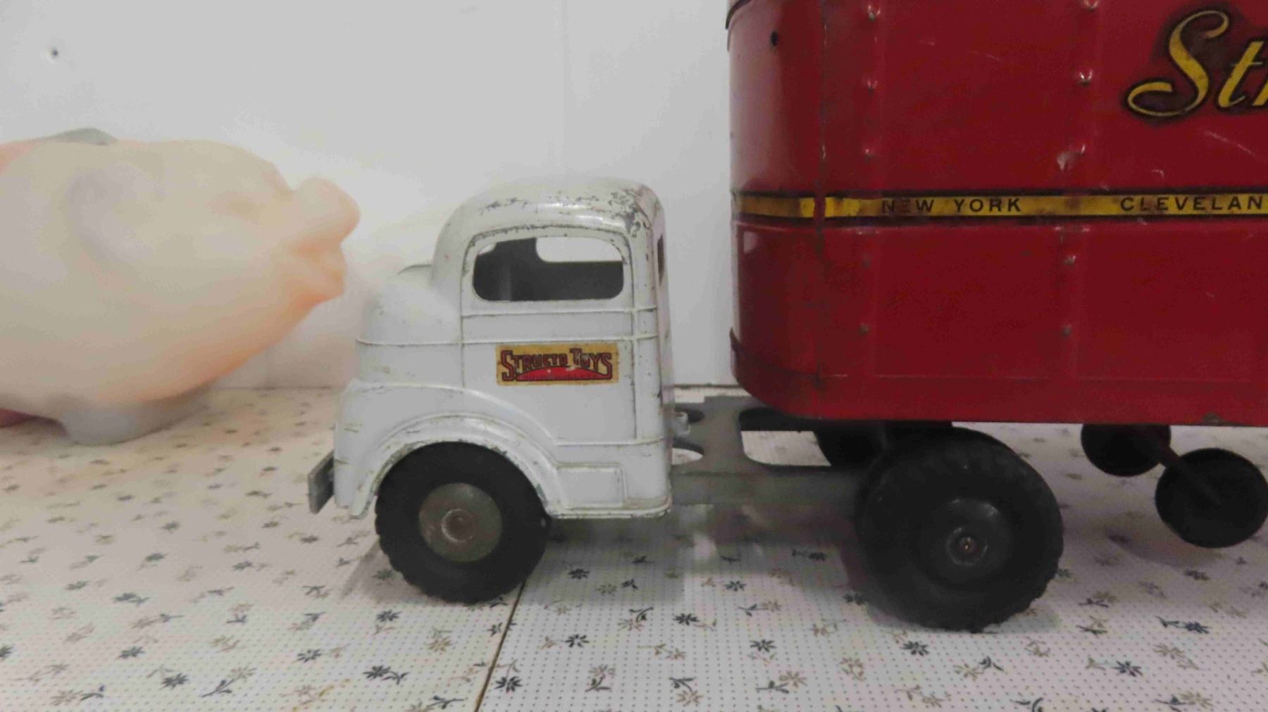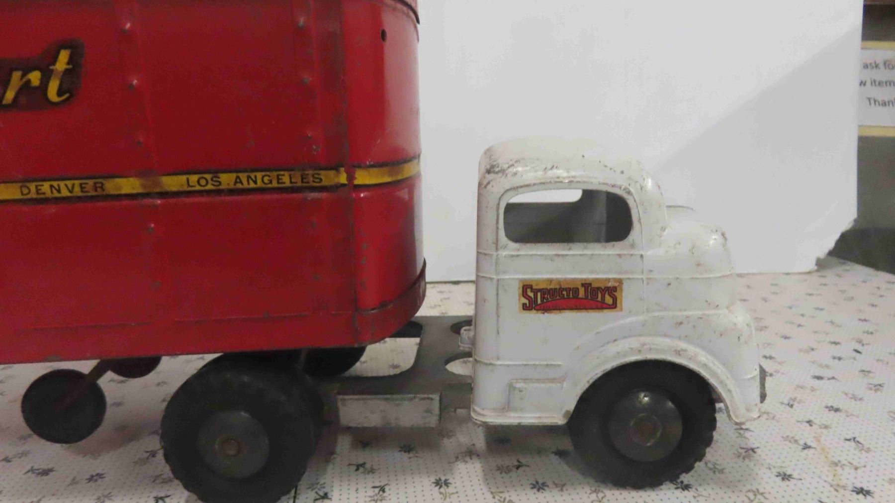 Antique Struted Transport Steel Toy 20'' Long - Missing 1 Back Trailer Door, Otherwise Great Condition